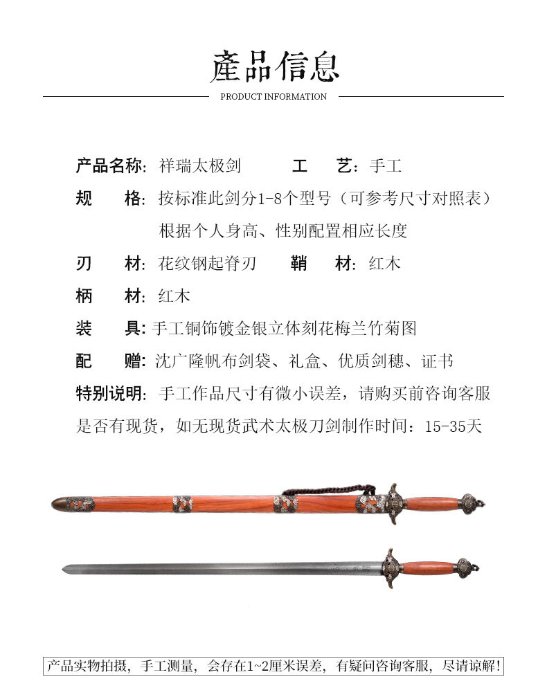 祥瑞太极剑 花纹钢太极剑 标准武术太极剑 龙泉沈广隆宝剑 未开刃