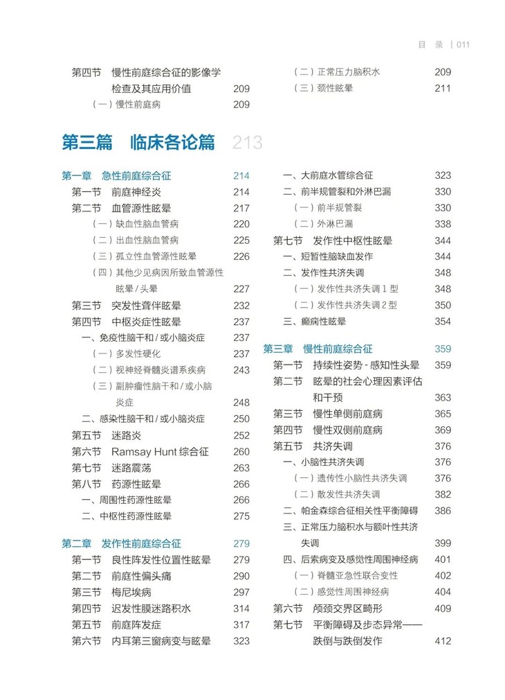 ◆ 临床各论篇分项对急性前庭综合征、发作性前庭综合征、慢性前庭综合征的流行病学、病因、临床表现、并发症、前庭功能检查、诊断、鉴别诊断、治疗进行了阐述,涵盖了前庭神经炎、良性阵发性位置性眩晕、前庭性偏头痛、梅尼埃病、慢性双侧前庭病、运动病、颈性眩晕等病种。