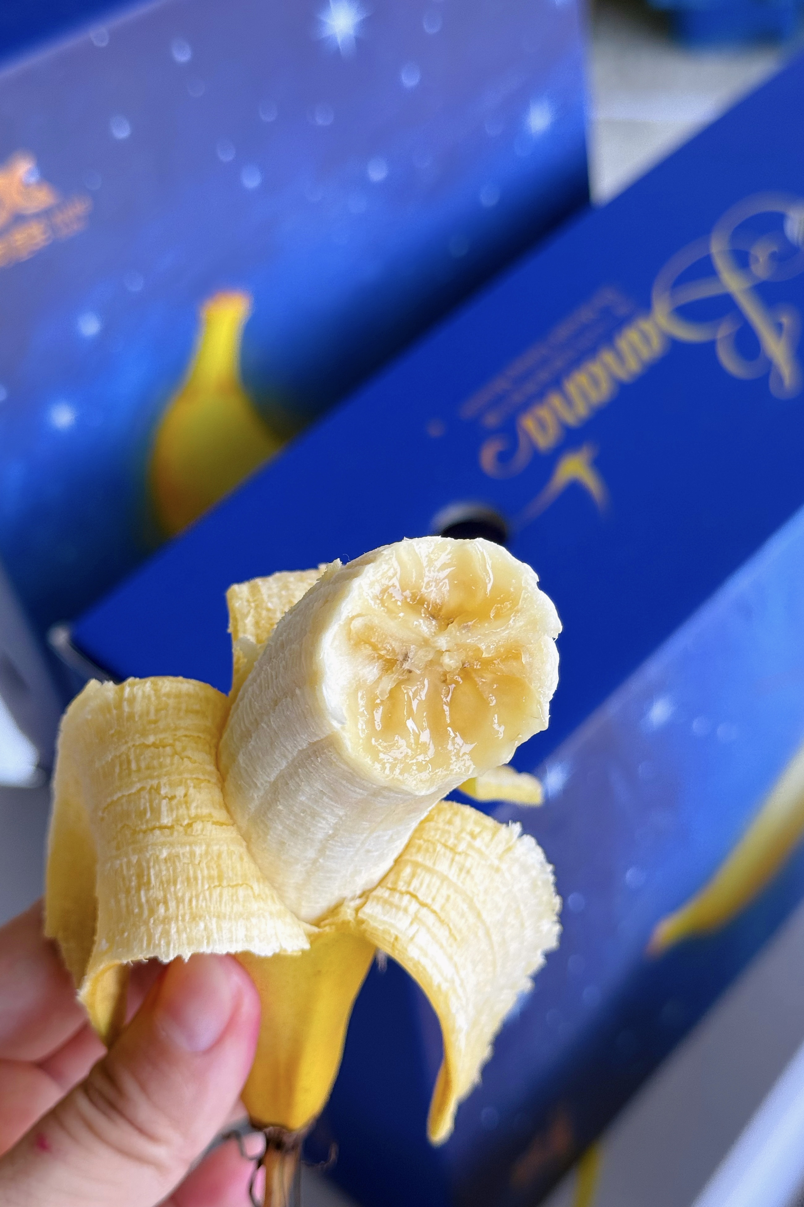 剥开皮的瞬间,浓郁又清新的香蕉香,是小时候吃的纯天然香蕉味道,闻着就忍不住流口水,光香味就征服人。