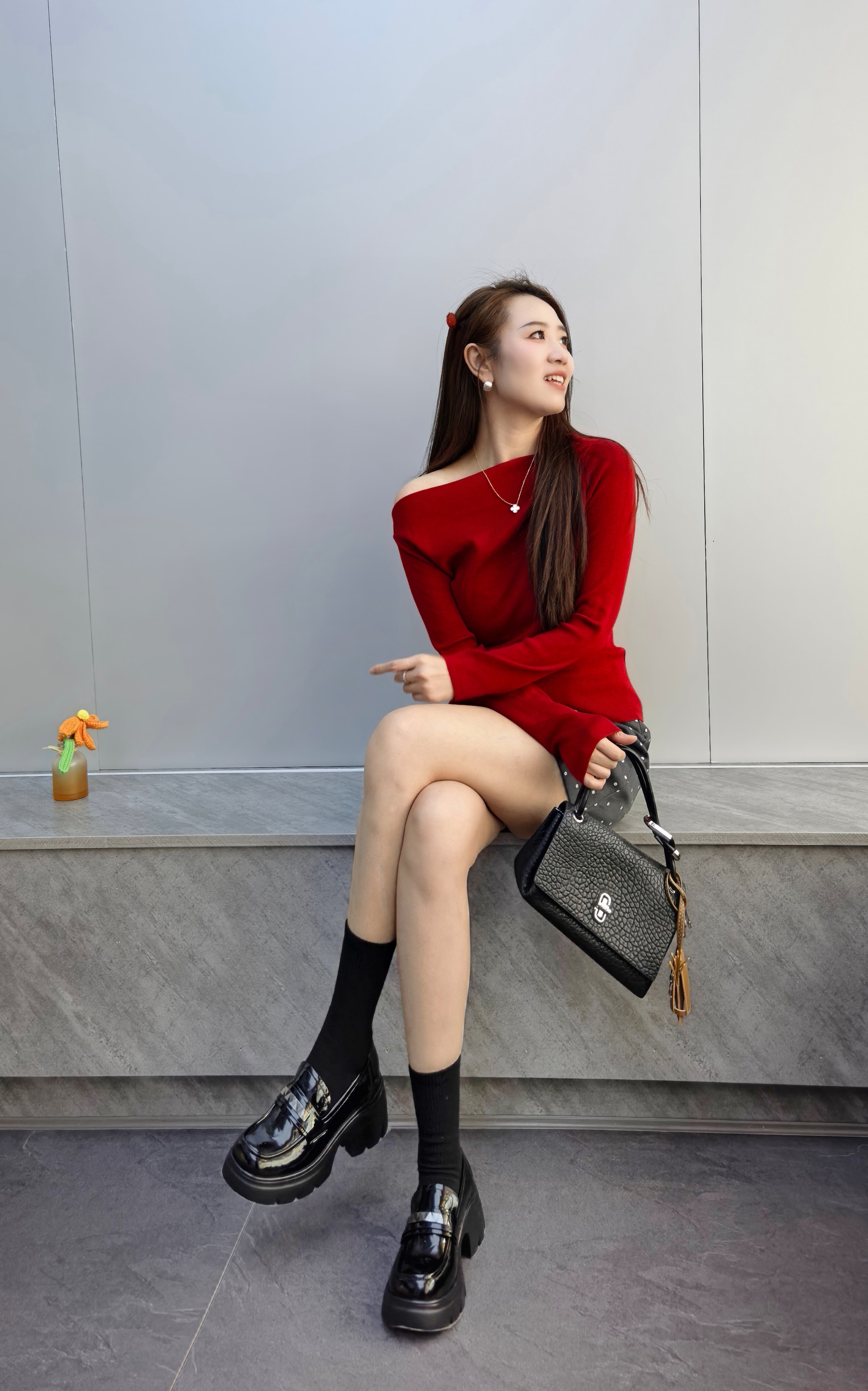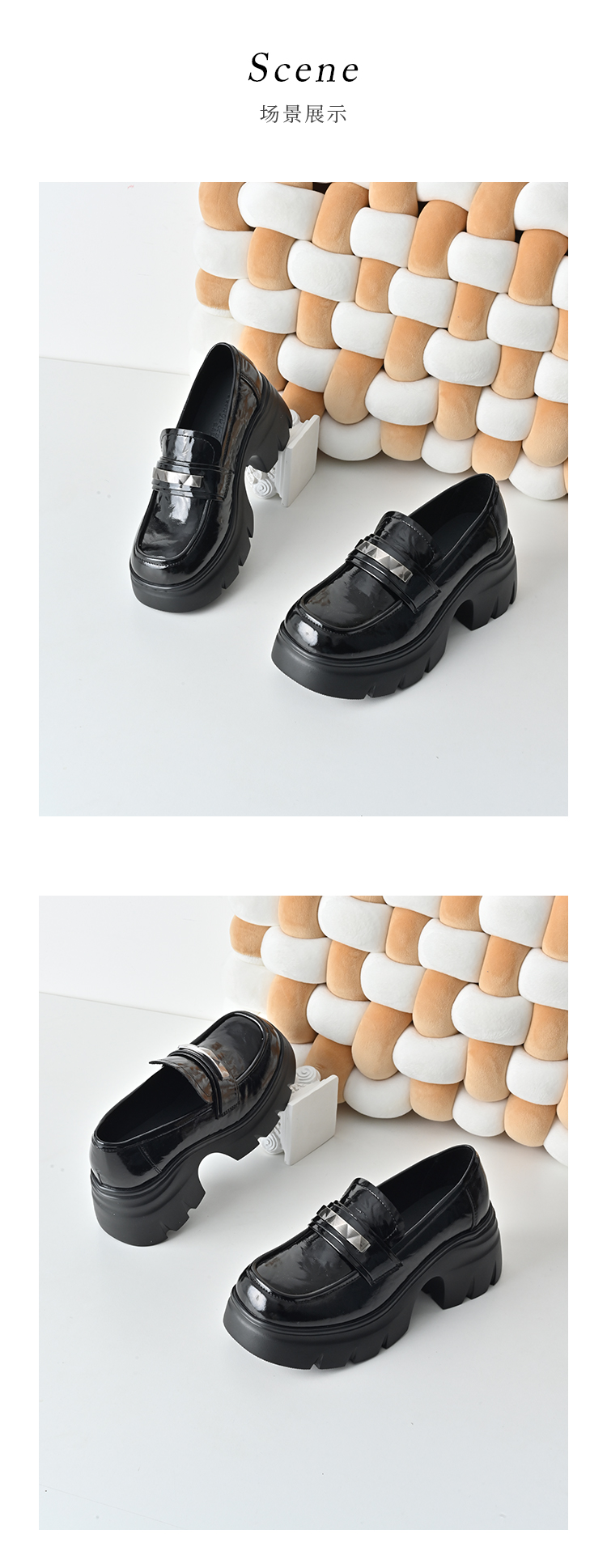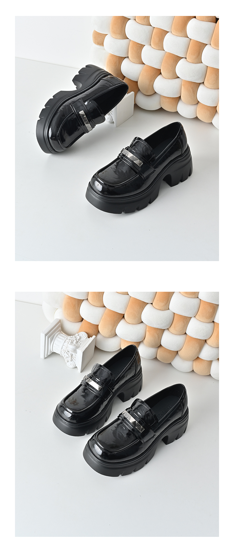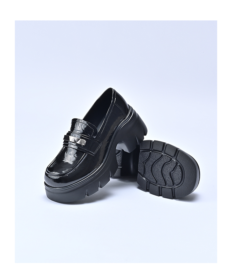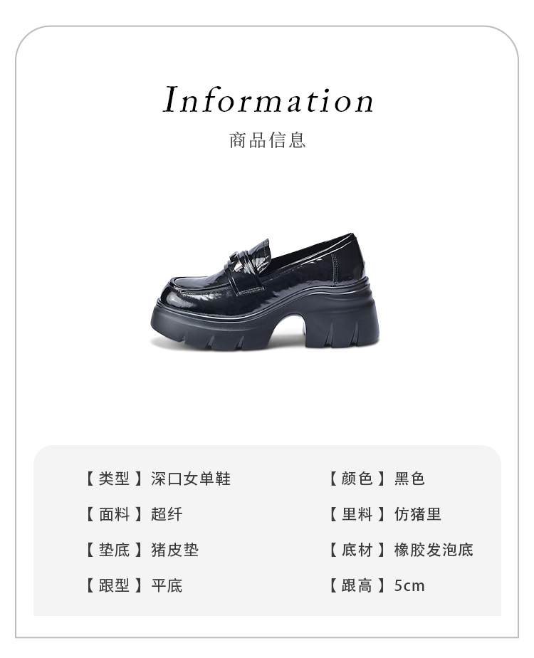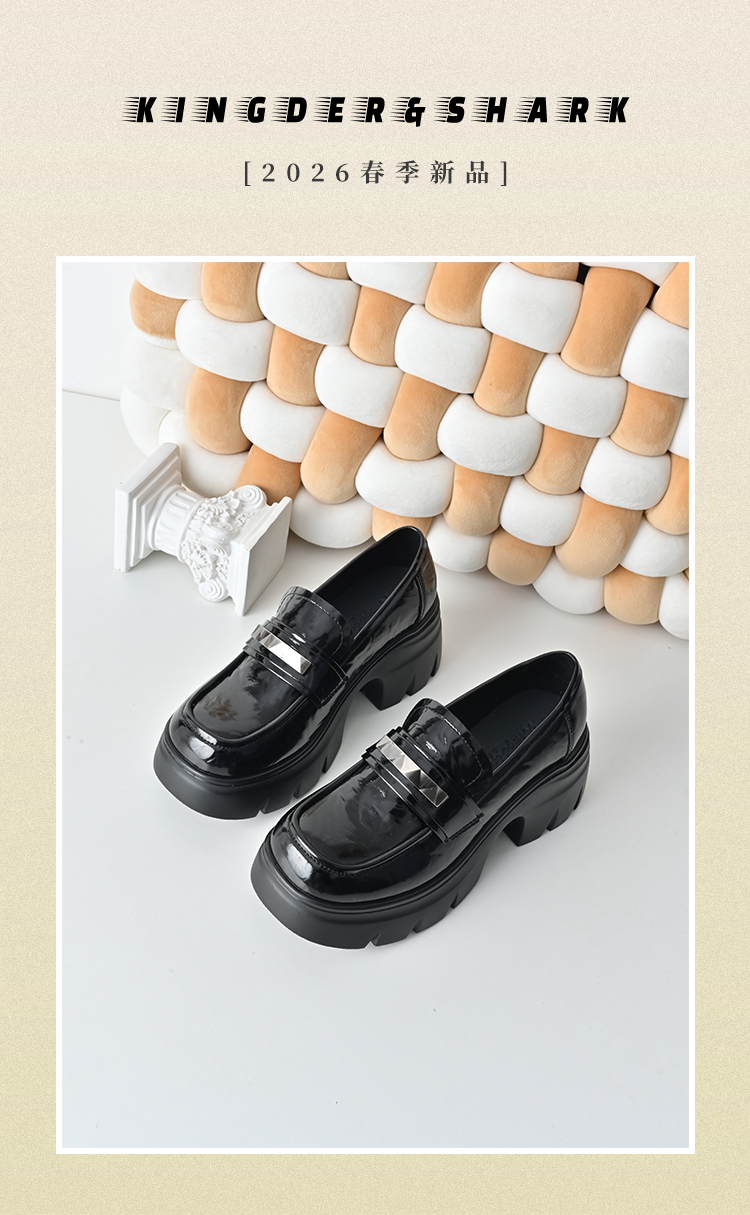 经典鲨2026年春专柜新品黑色圆头一脚蹬中粗跟轻便乐福鞋女KW323-617011