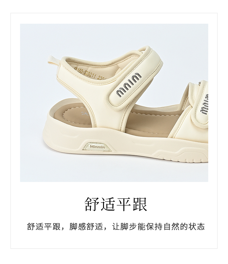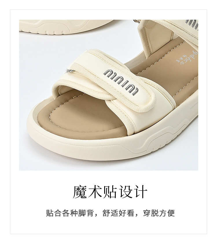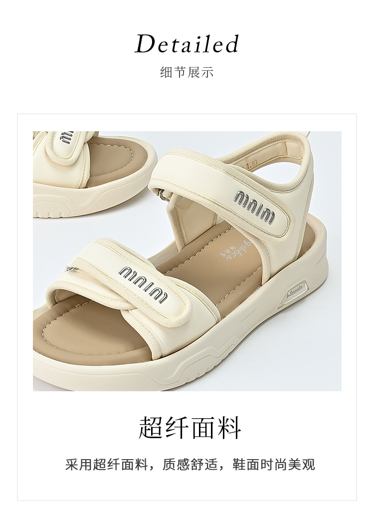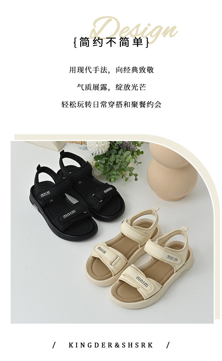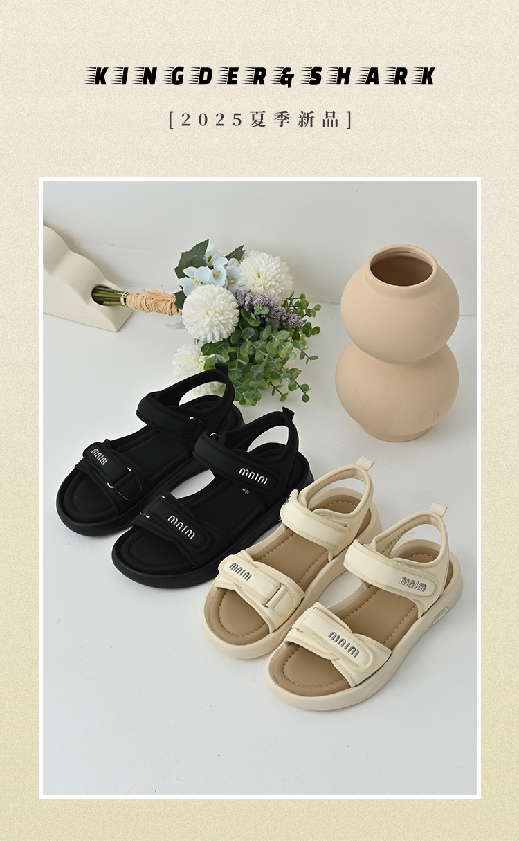 经典鲨2025夏季新品百搭简约平底露趾魔术贴沙滩运动凉鞋女KW160-529211