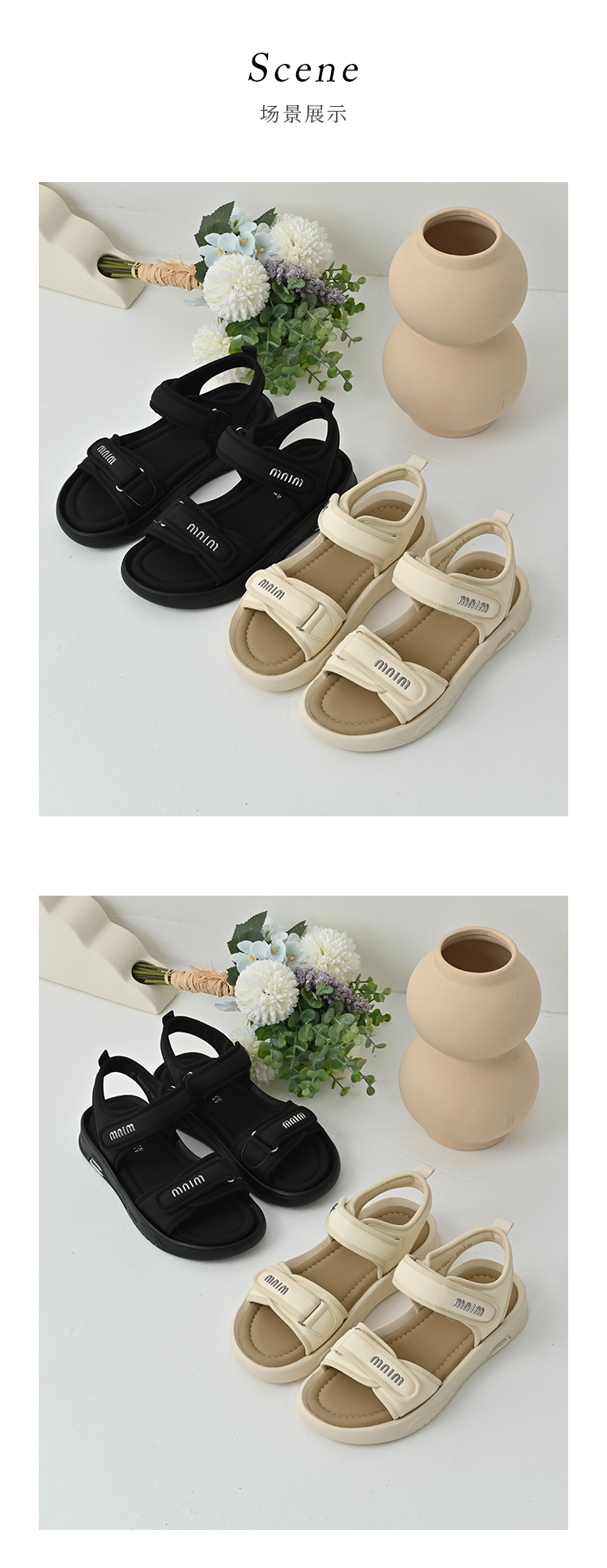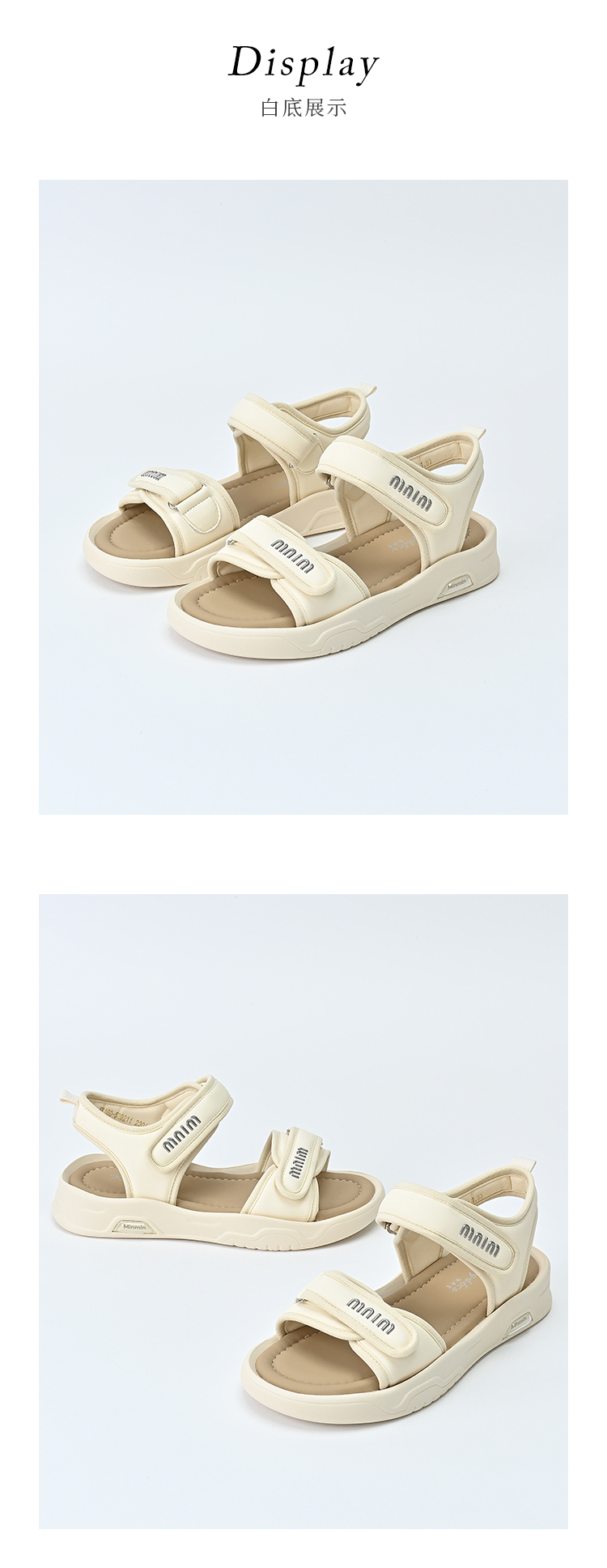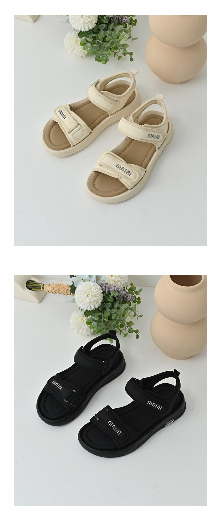 经典鲨2025夏季新品百搭简约平底露趾魔术贴沙滩运动凉鞋女KW160-529211