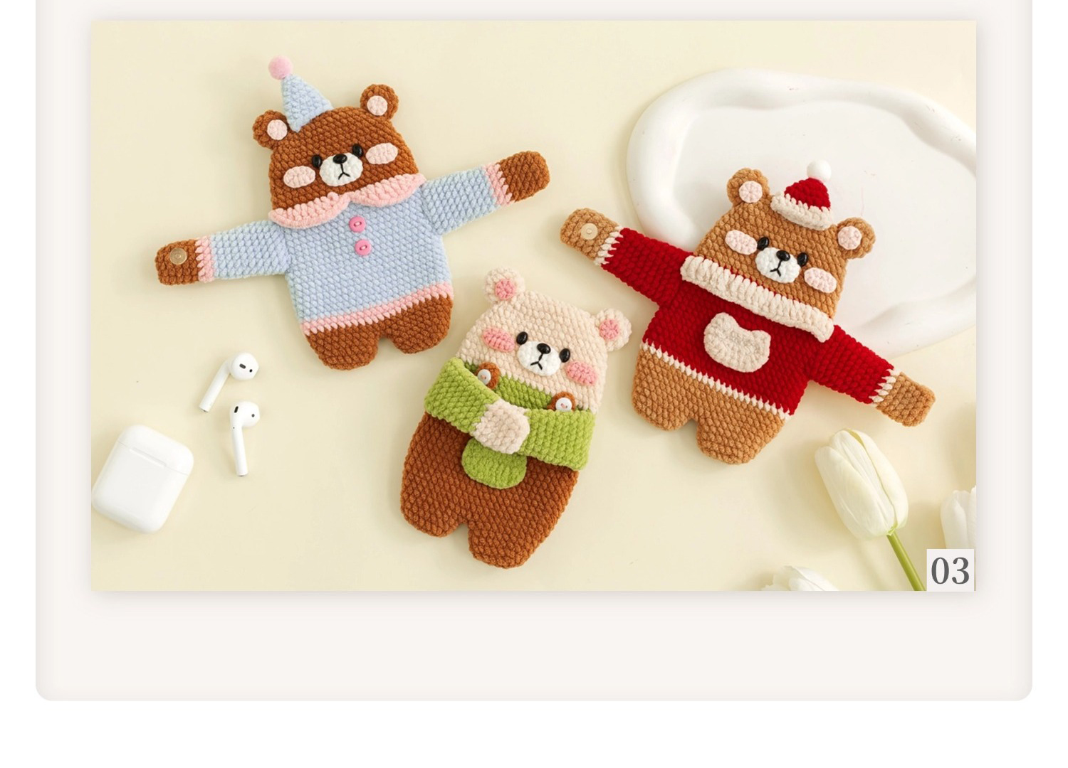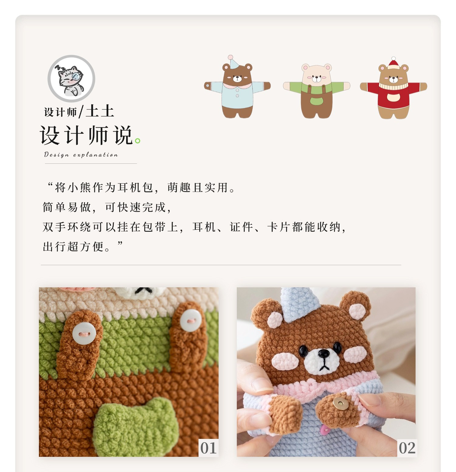 苏苏姐家小熊耳机包手工diy编织钩针创意小物毛线团自制材料包