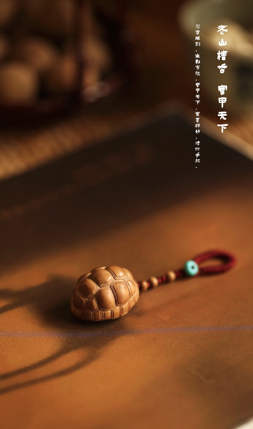取材老山檀老料,奶香味纯正,写实雕刻,富甲天下,寓意颇好,适用钥匙扣,包挂,生动有趣。