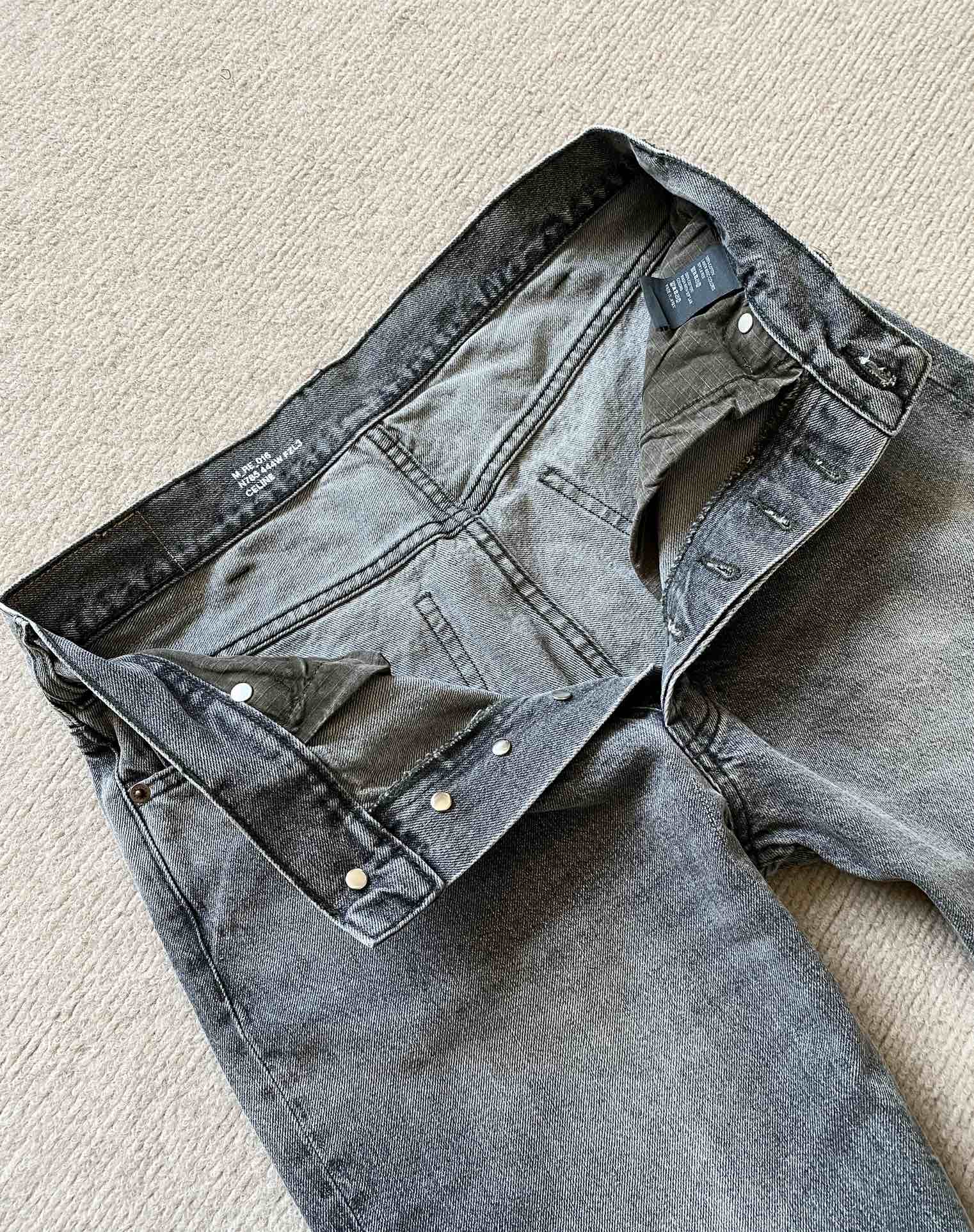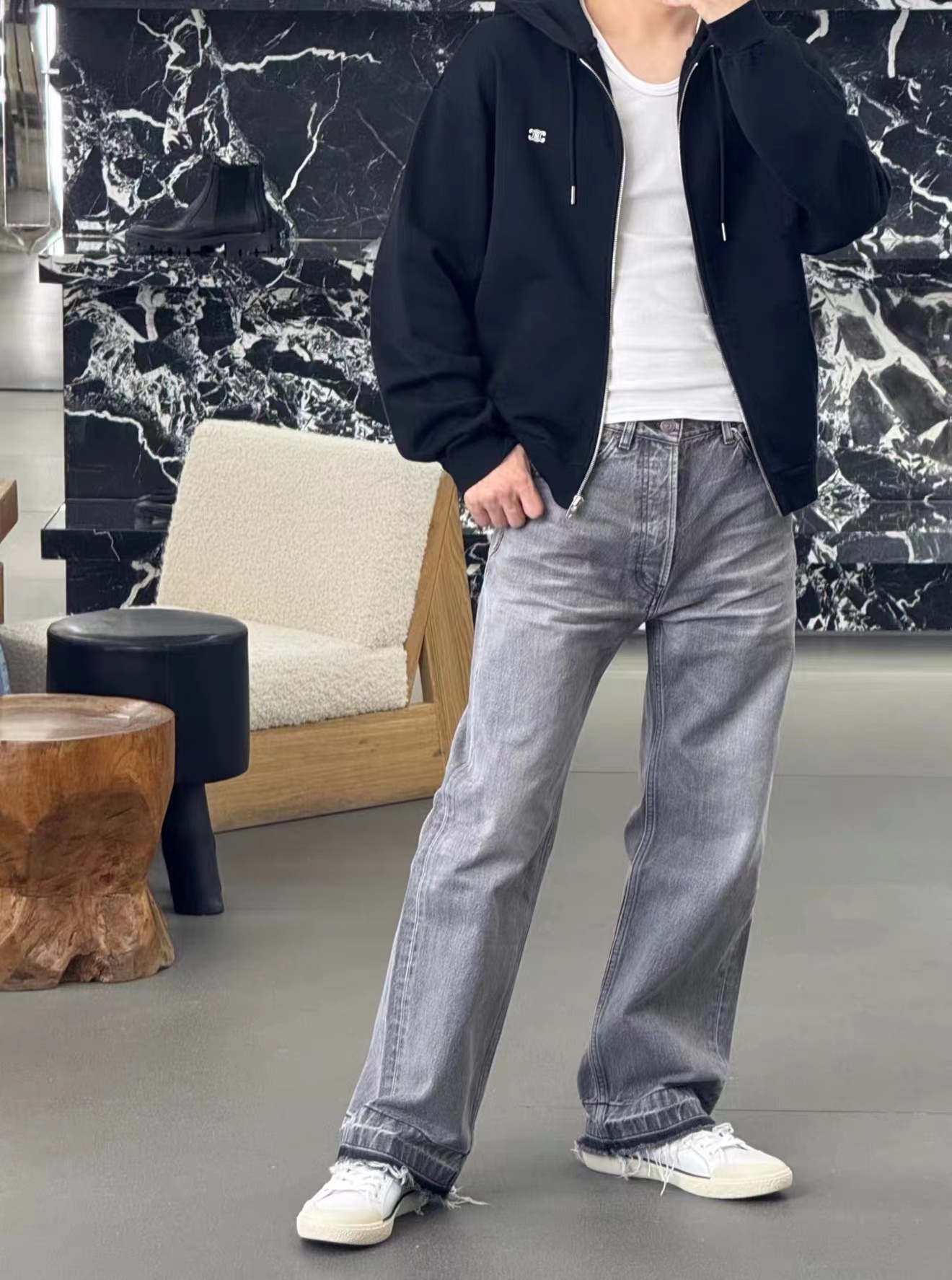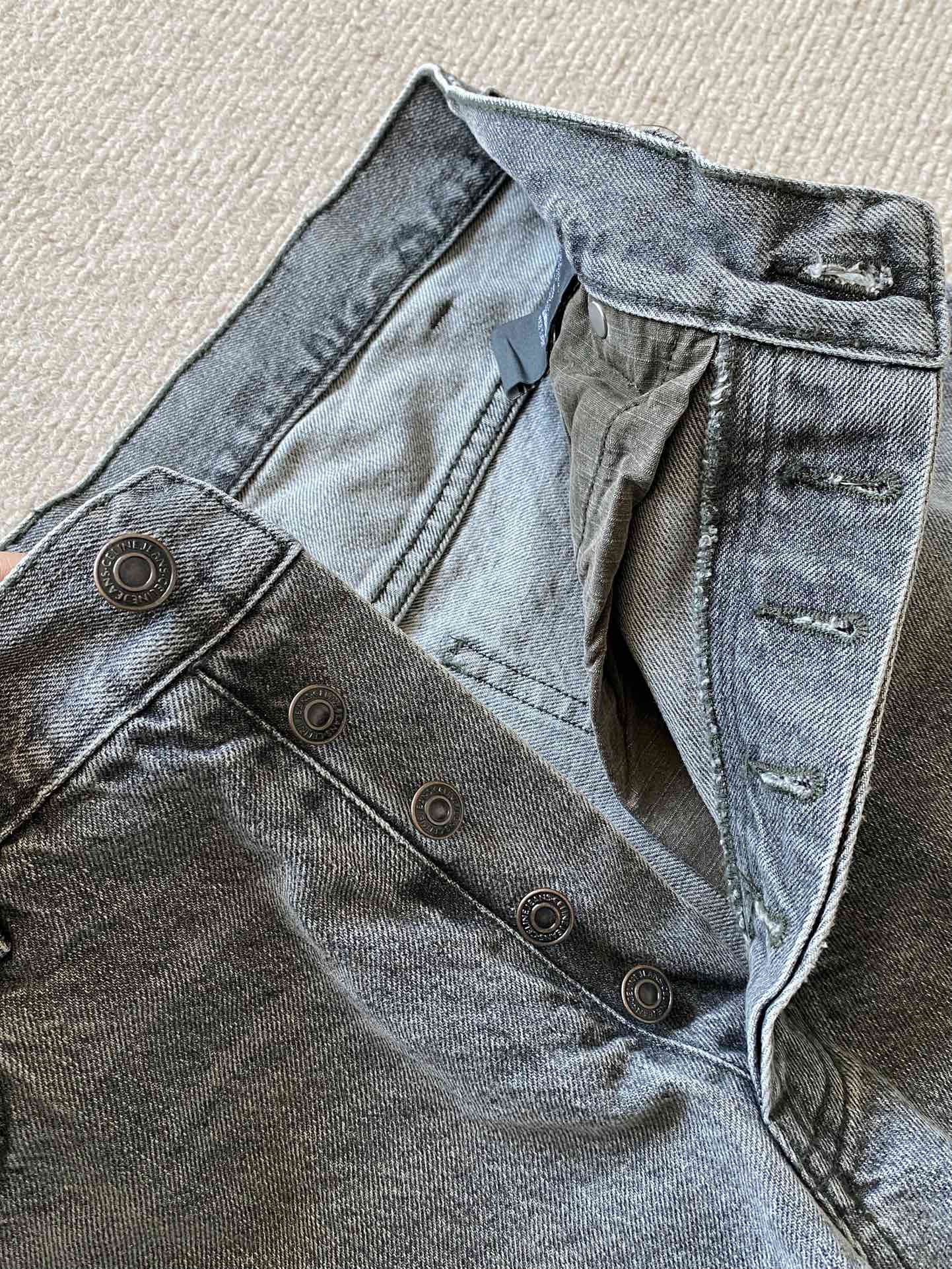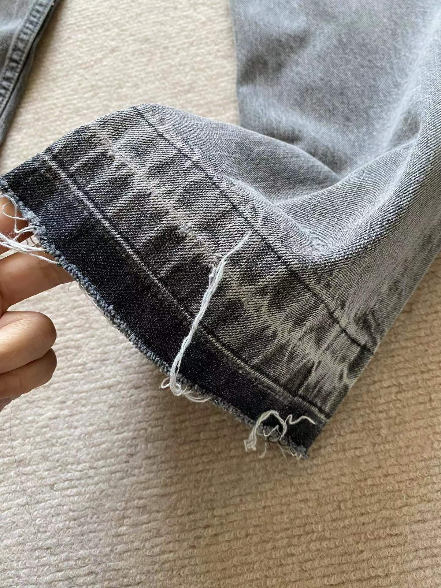 重工水洗灰 Wesley 牛仔裤。 采用国内牛仔顶流 T1 黑牡丹面料。定纺 100 经纬竹节纱线 370g 重磅挺括有型,手感一眼gao级手工炒雪花、喷码骝、扎花多重工艺。裤脚破坏水洗反复调试,还原原版灵魂五金、皮牌全部开模定制 细节对位,PS:此款为重工水洗做旧风格,有裤脚线条絮絮及水洗折痕为不规则形态;不是每条都一模一样