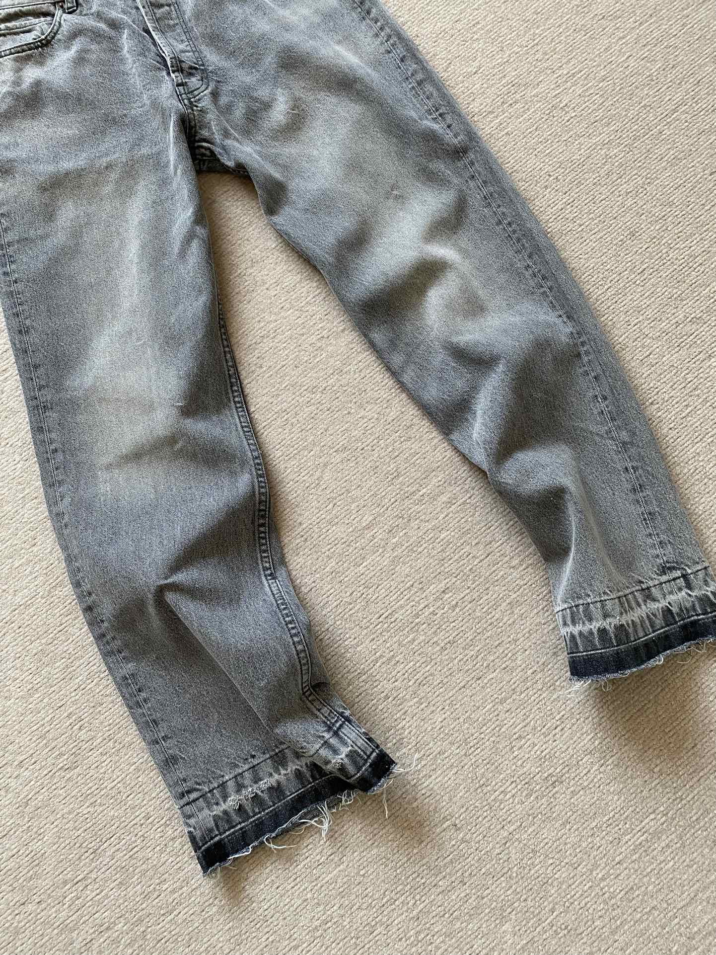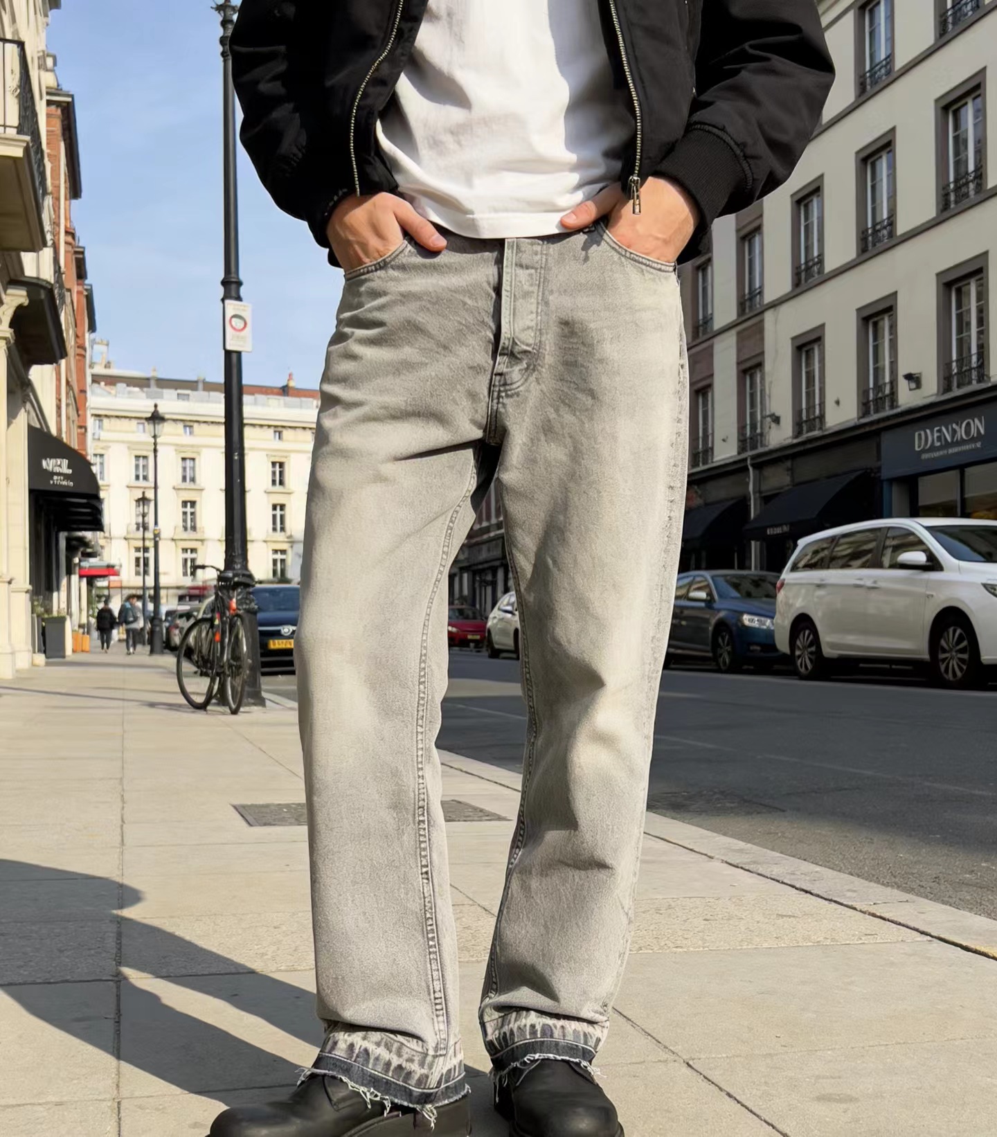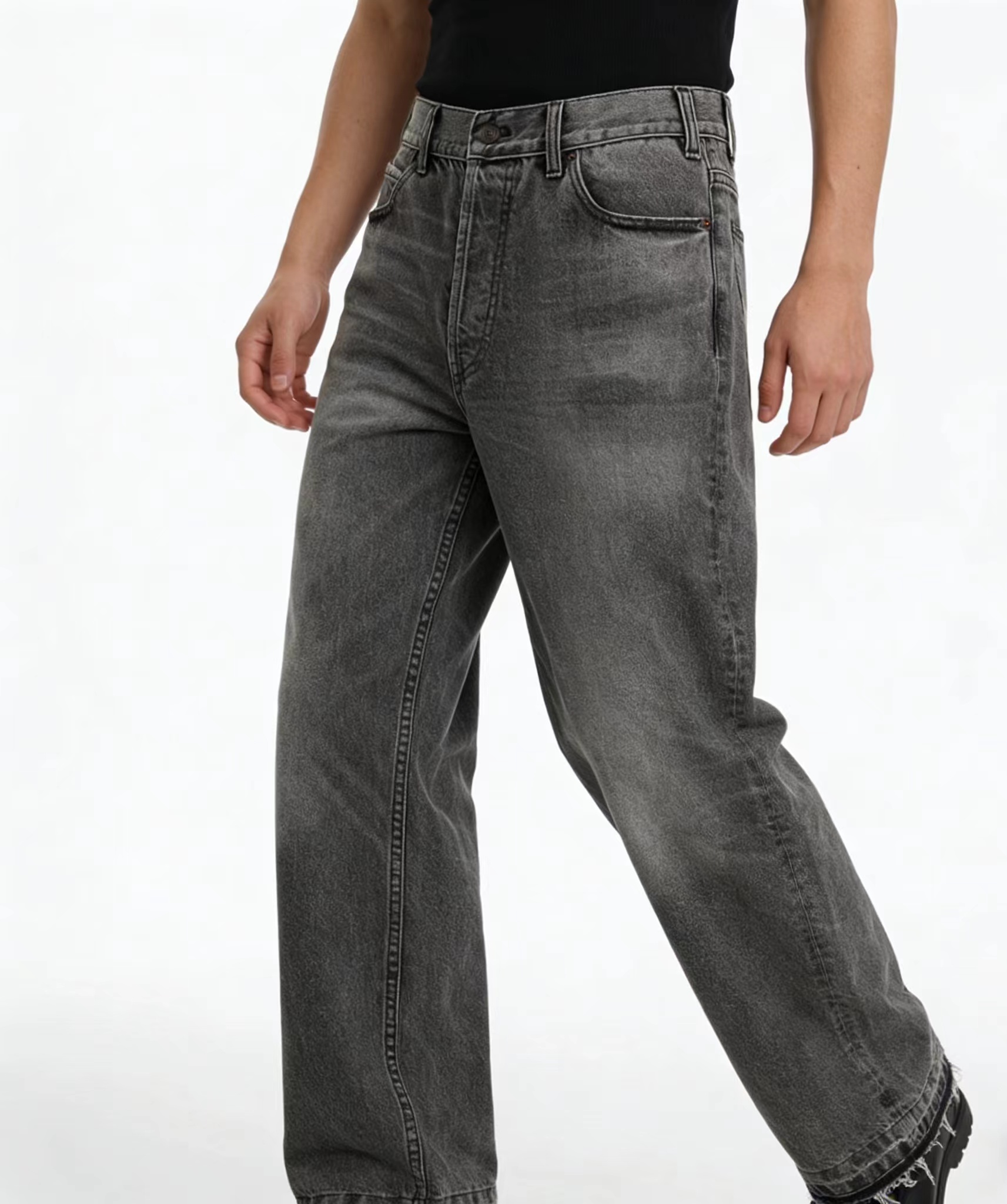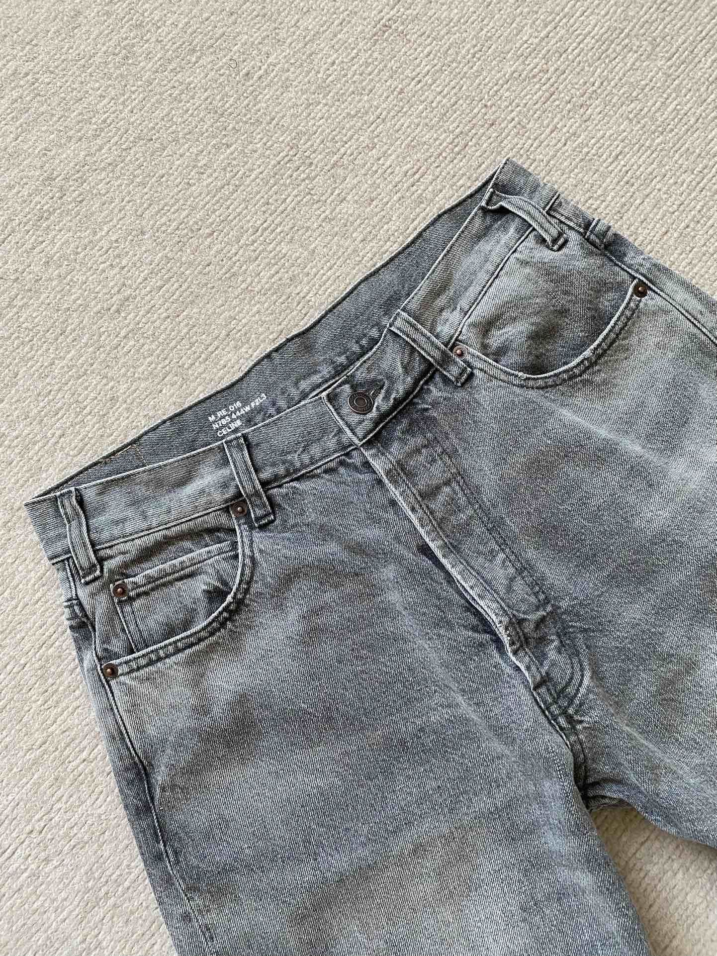 重工水洗灰 Wesley 牛仔裤。 采用国内牛仔顶流 T1 黑牡丹面料。定纺 100 经纬竹节纱线 370g 重磅挺括有型,手感一眼gao级手工炒雪花、喷码骝、扎花多重工艺。裤脚破坏水洗反复调试,还原原版灵魂五金、皮牌全部开模定制 细节对位,PS:此款为重工水洗做旧风格,有裤脚线条絮絮及水洗折痕为不规则形态;不是每条都一模一样