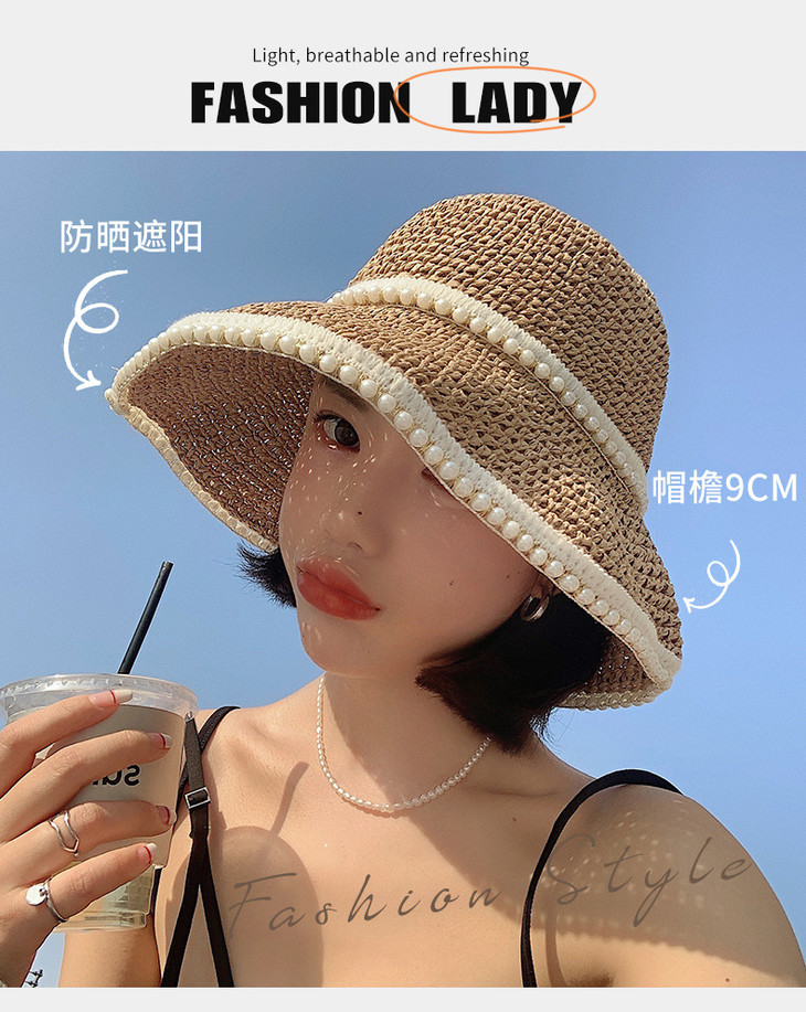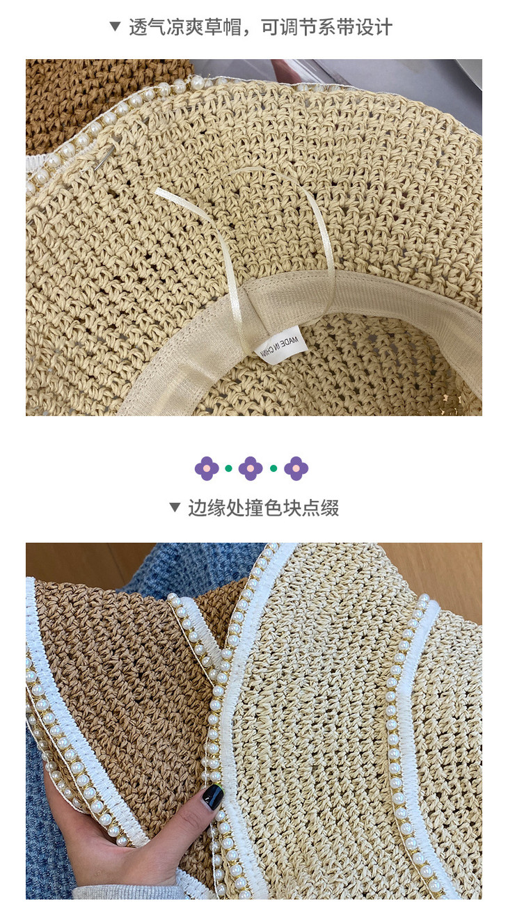 【服饰鞋包】帽子女编织珍珠草帽夏季亲子遮阳防晒海边沙滩大头围渔夫太阳帽凉
