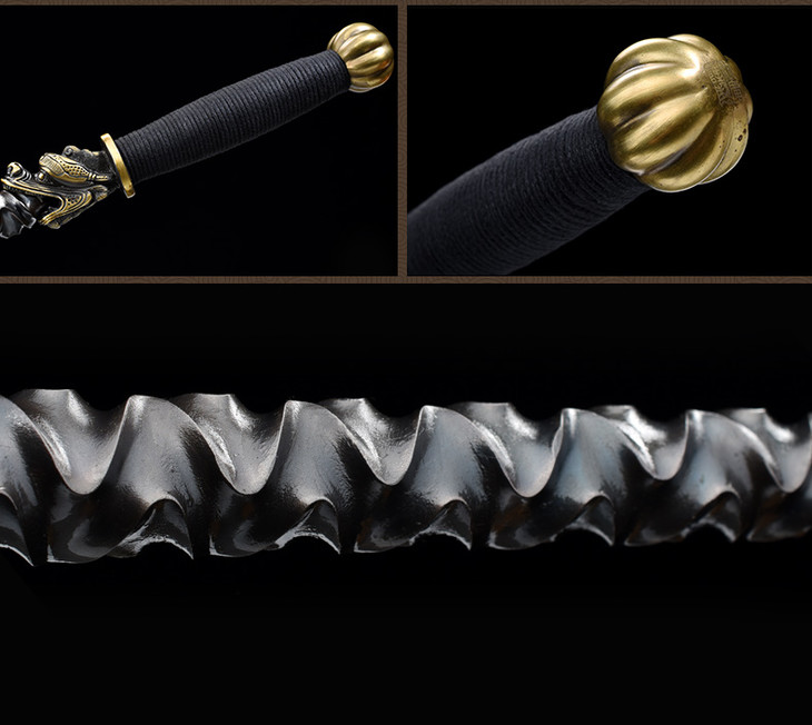 伏魔鞭 单手鞭 花纹钢一体短鞭传统冷兵器 龙泉沈广隆剑 工艺品 未开刃