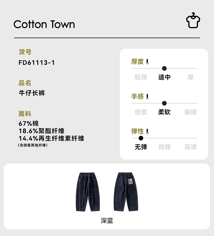【活性染色牛仔裤】 棉花堂 牛仔长裤 防褪色 挺括有型 百搭 FD61113