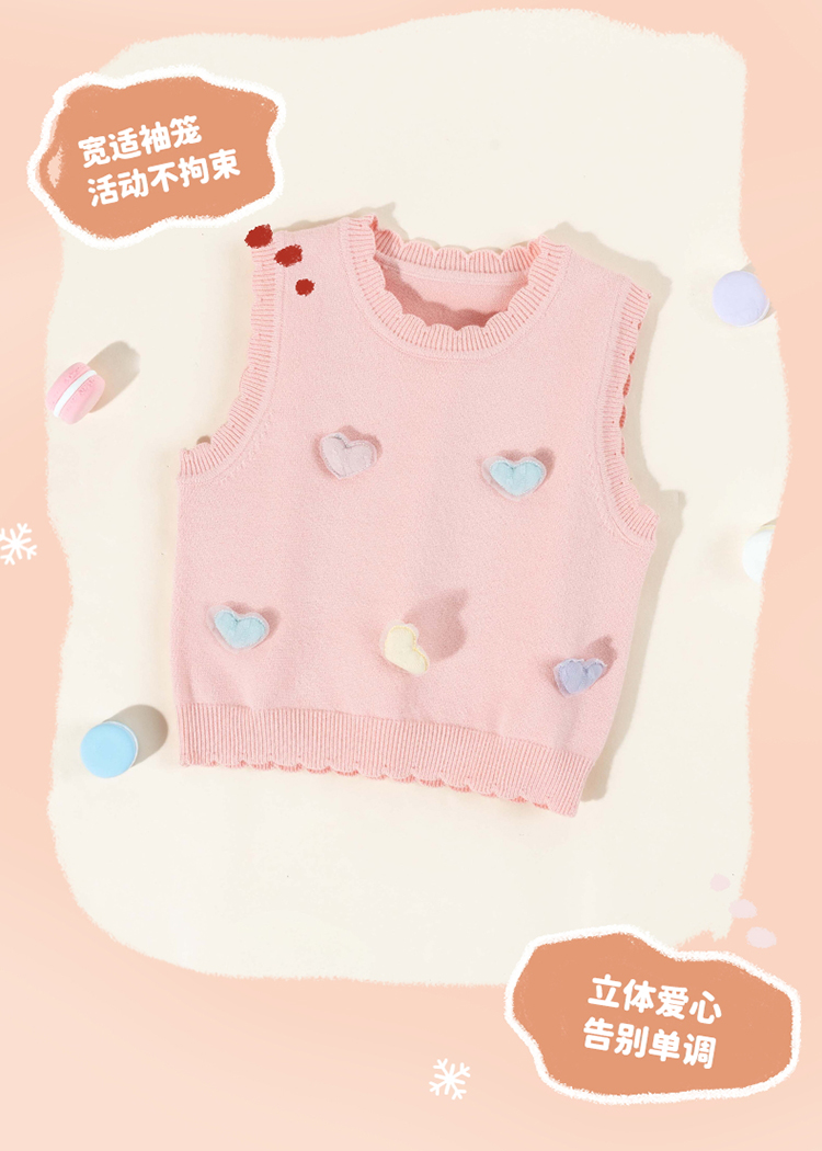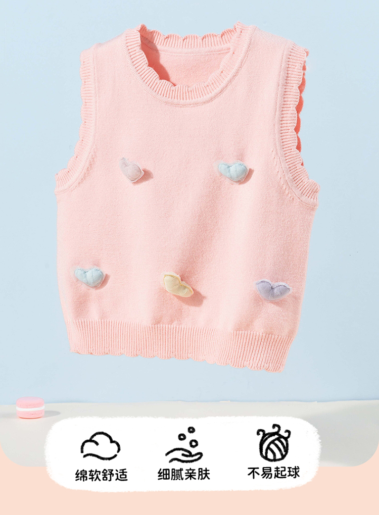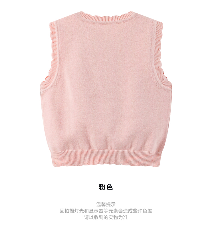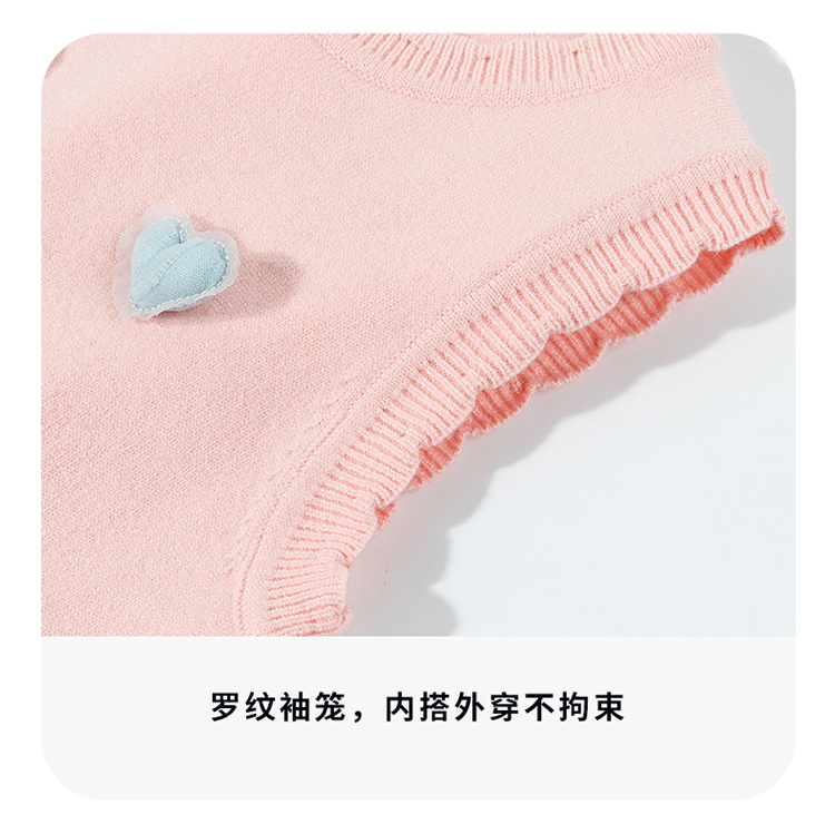 贝贝怡24春秋新款女童毛衣马甲可爱花边领打底针织背心ZB3DS084