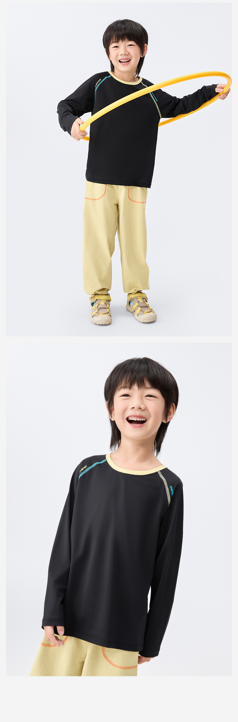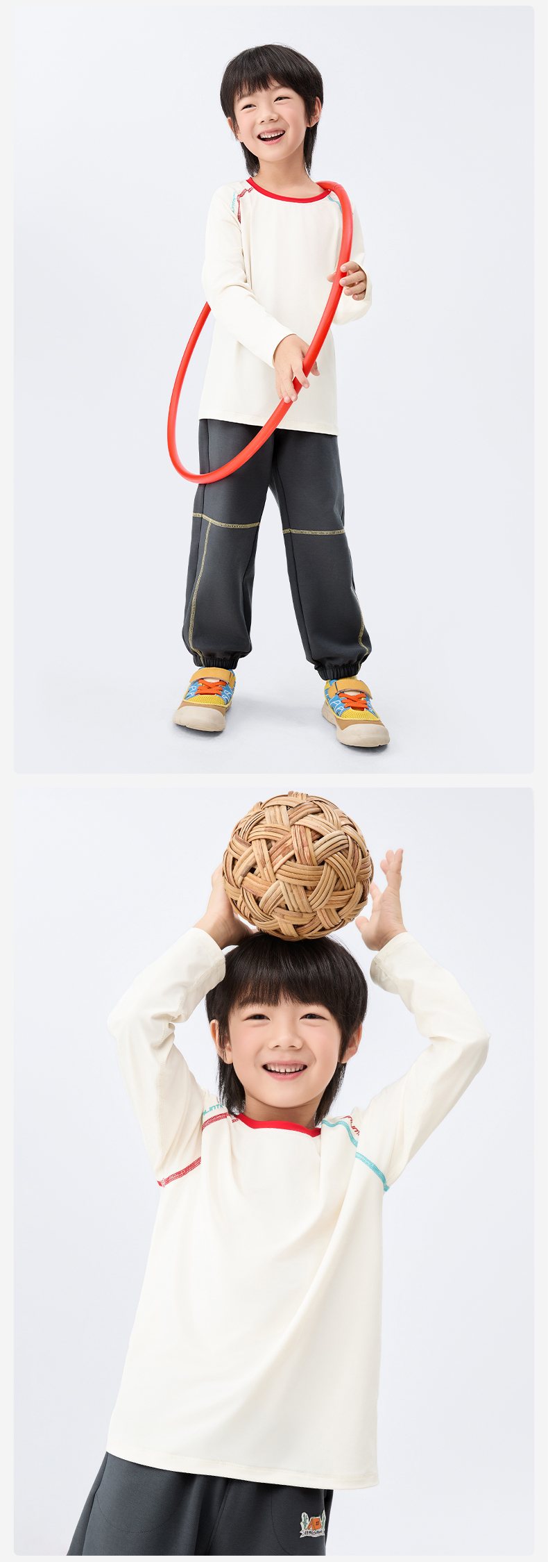 全身无骨缝合工艺,玩耍跑动的时候对皮肤几乎没有摩擦,体感绝对的舒适。定制的后领包条,定制的侧唛,贴合的走线,这些细节做工都很精致;运动拇指套设计,袖口不易位移,主打一个专业运动。