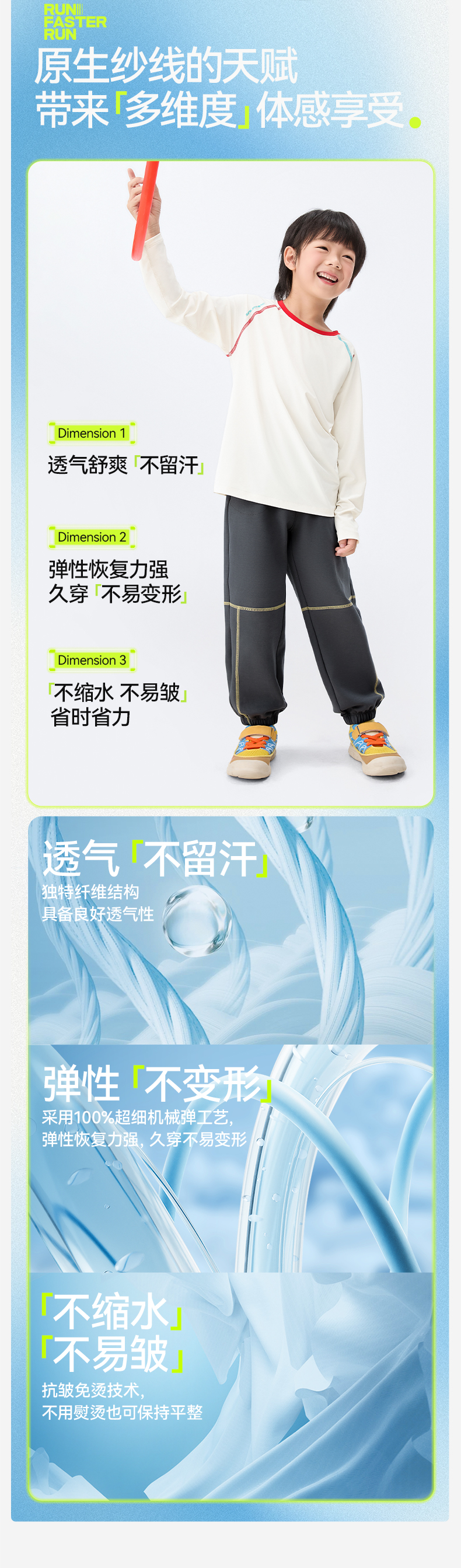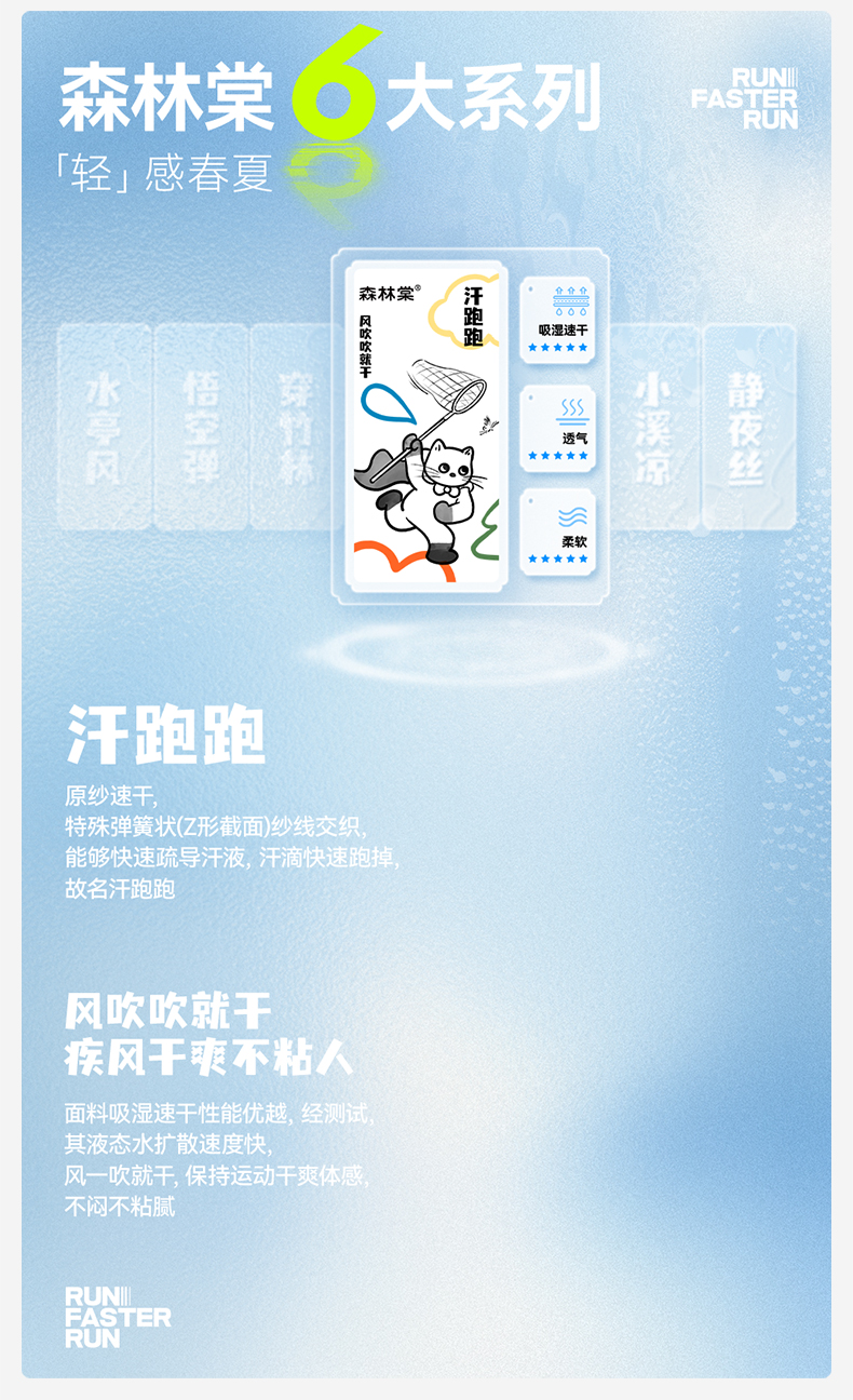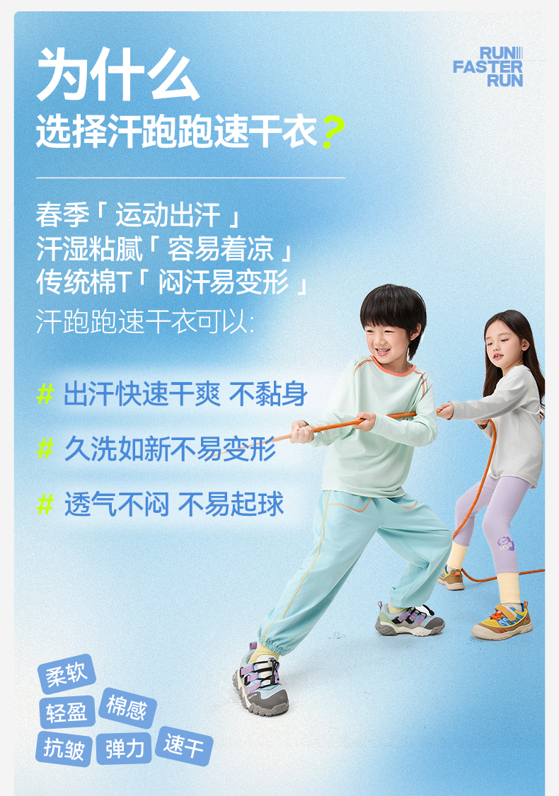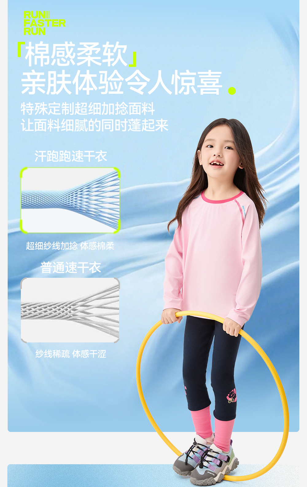 不同于常规速干衣的干涩体感,汗跑跑面料蓬松棉柔得像纯棉一样棉感处理的相当到位,我们做到了又舒适又强大,面料对标一线大牌。