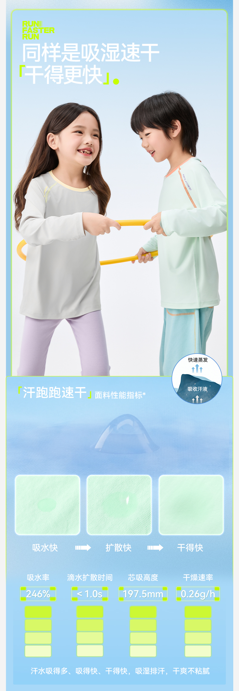 推荐理由:专业级速干衣,1秒瞬吸,快速干燥,速干性能远超国标,围绕操场跑完800米依然很干爽。