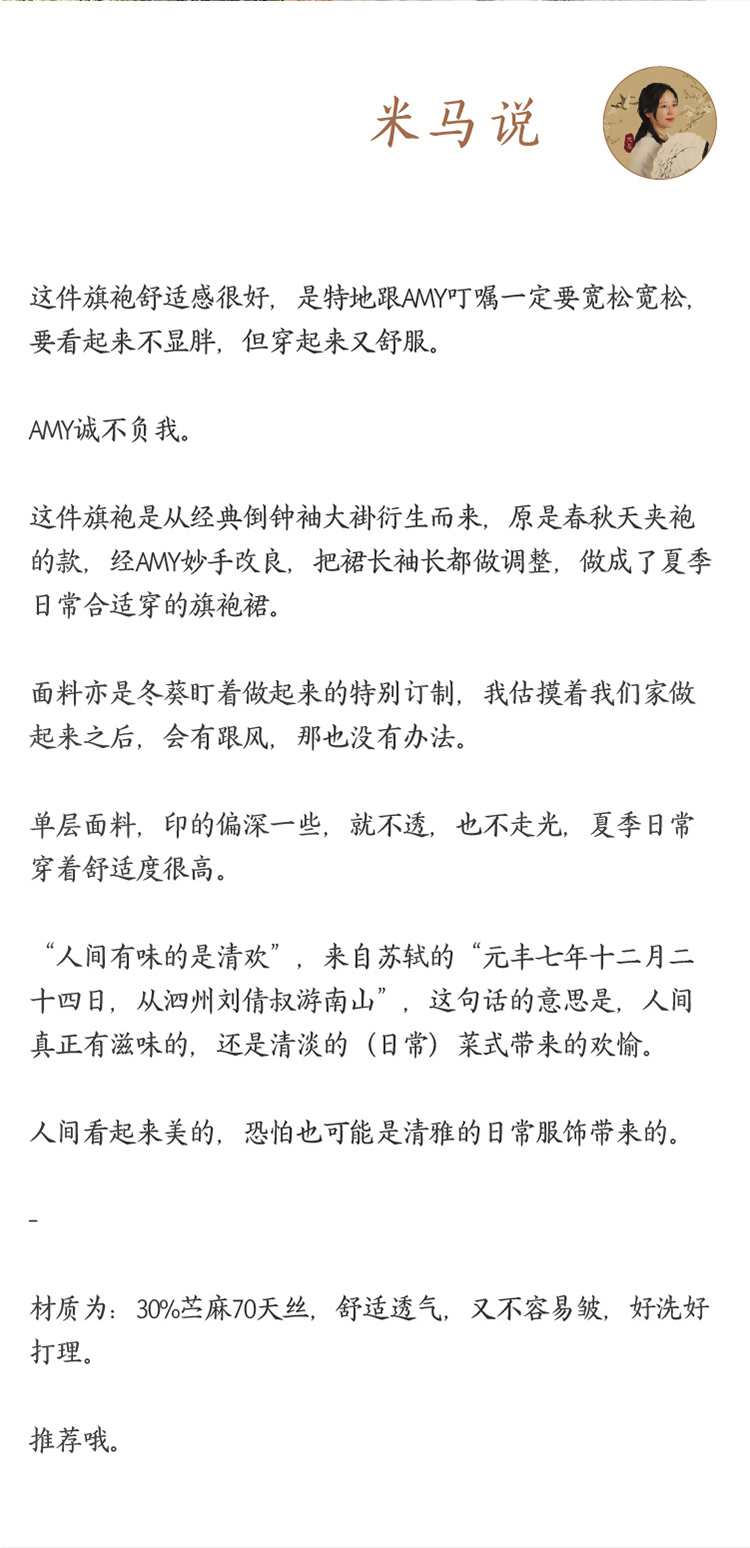 米马设计 人间有味是清欢 日常穿的宽松旗袍裙