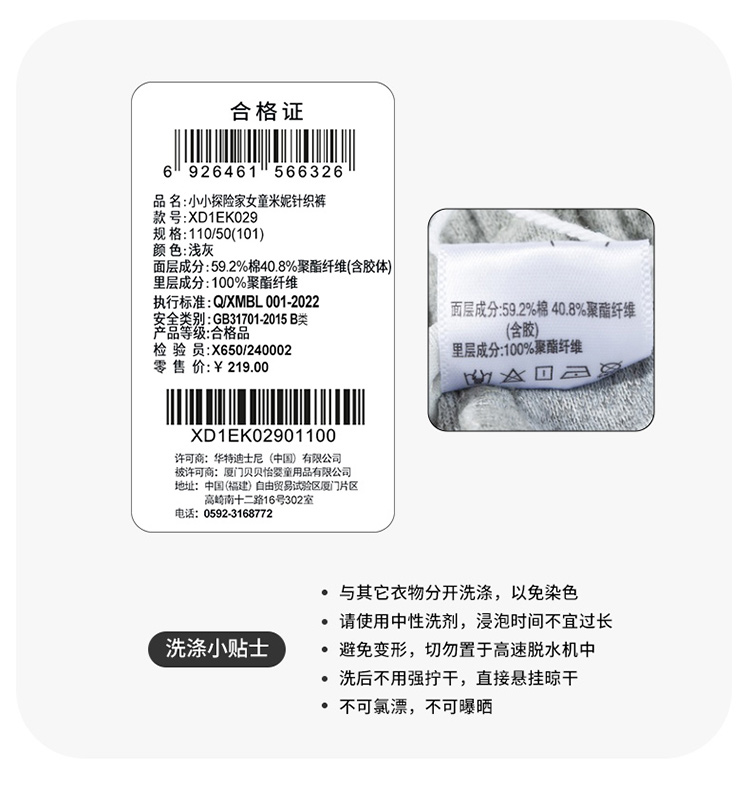 迪士尼女童针织长裤XD1EK029