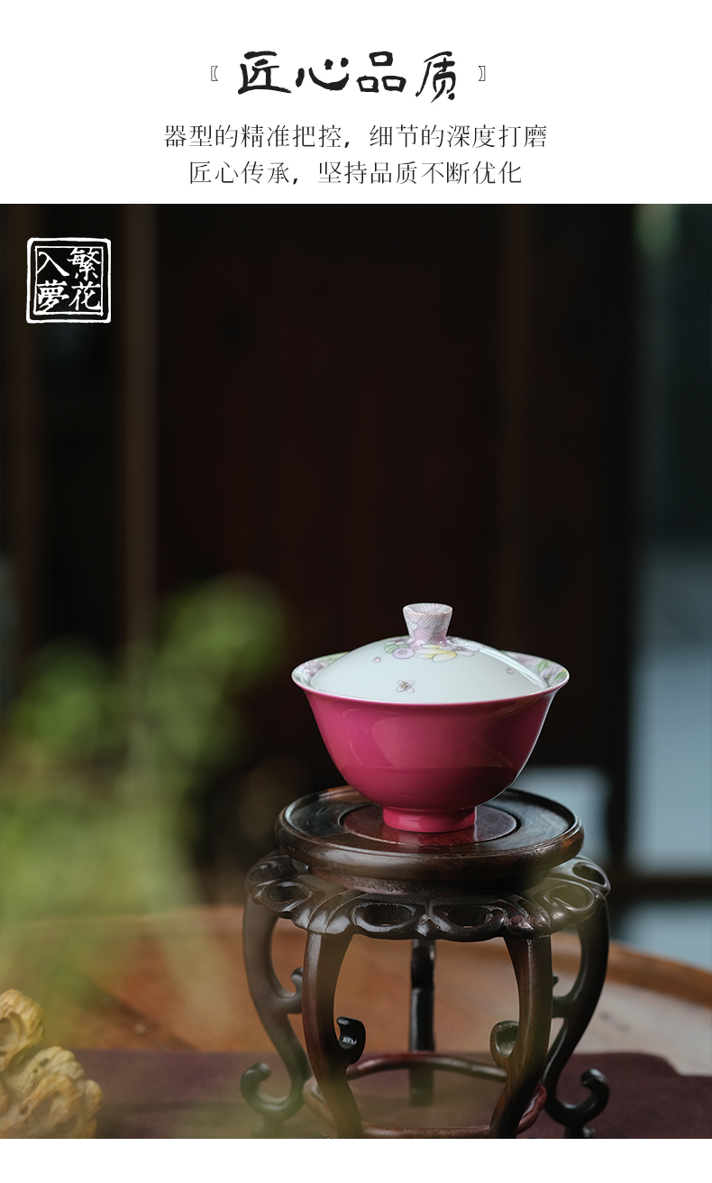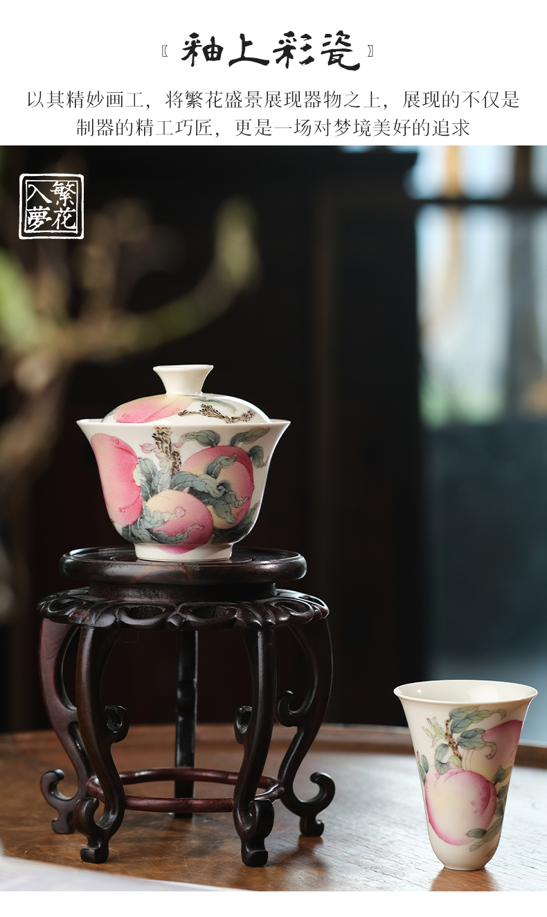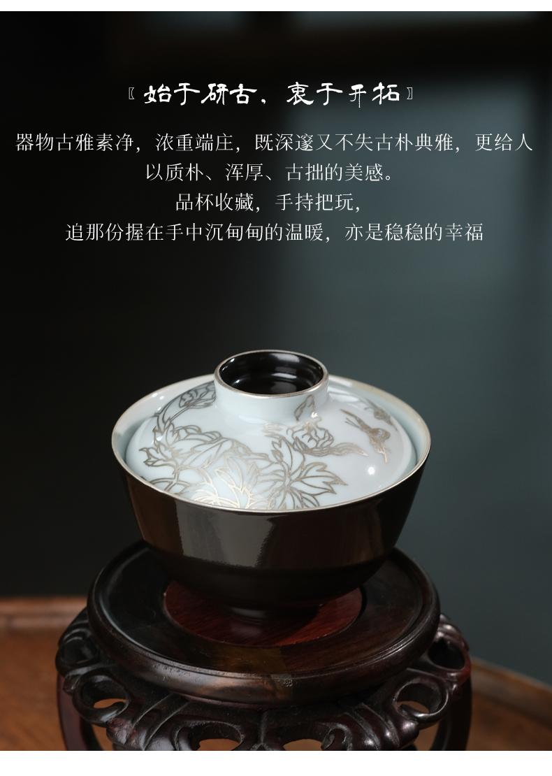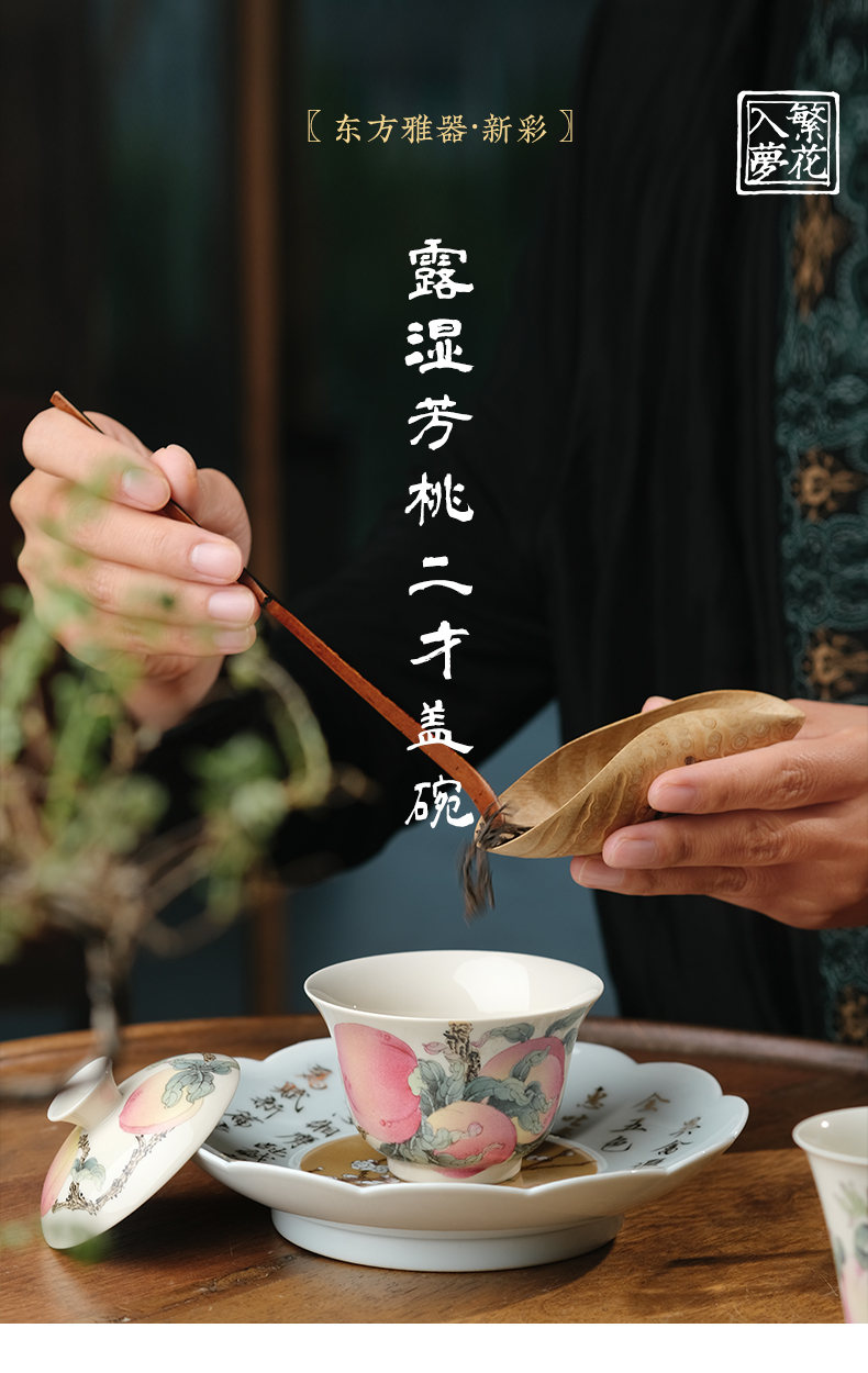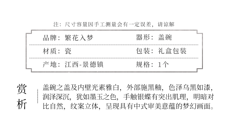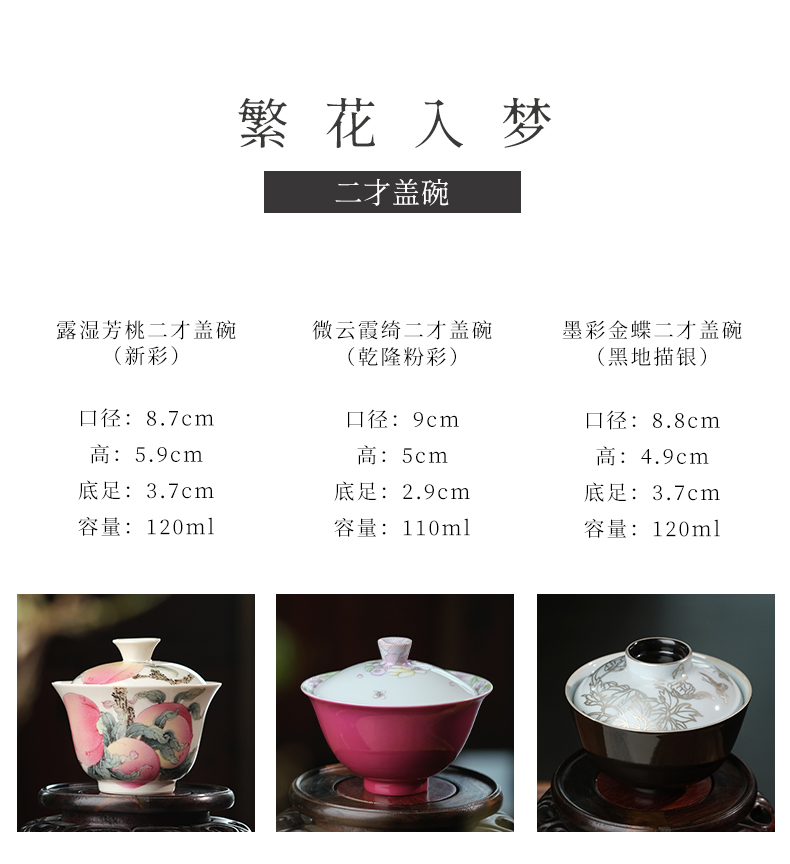繁花入梦 露湿芳桃二才盖碗 微云霞绮二才盖碗 黑地描银-墨彩金蝶二才盖碗
