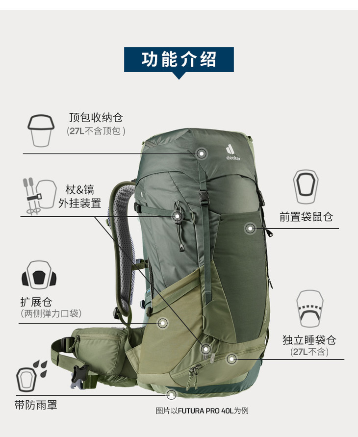 多特 男款 福特拉 1-2日徒步 登山包 Deuter Futura
