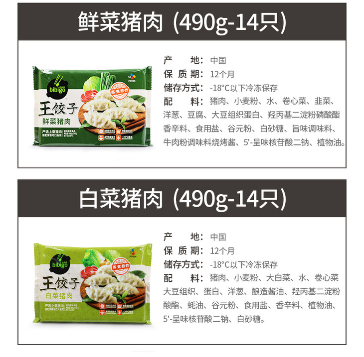 【1袋|多口味可选】必品阁(bibigo)王饺子490g 高品质速冻水饺