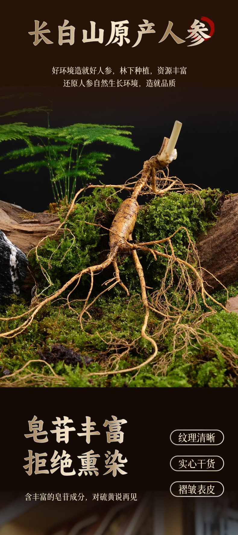 林下参 4根一盒单支10年左右整枝长白山林下参干货 生晒参