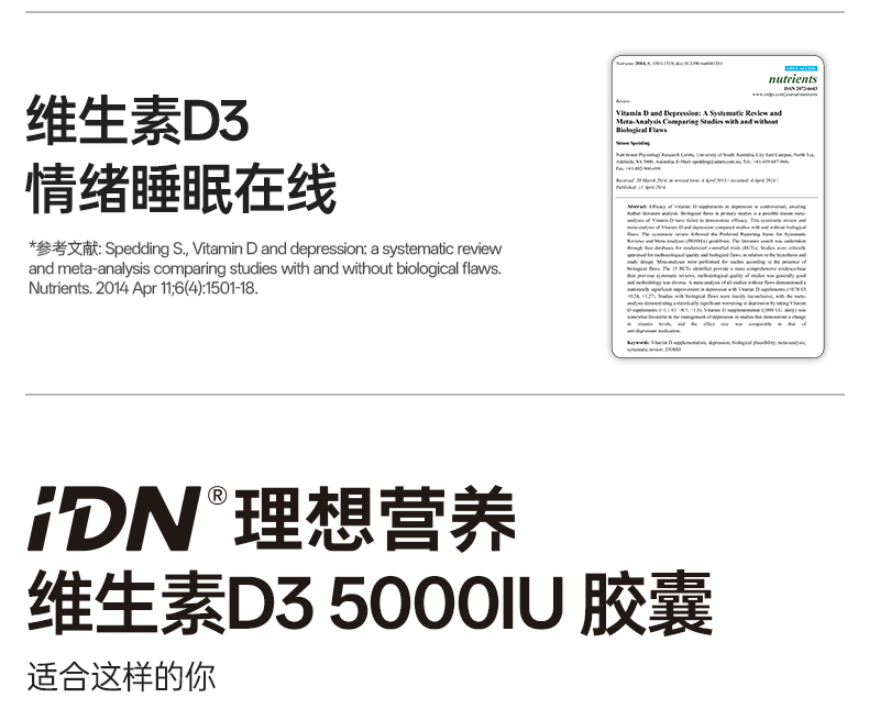 IDN理想营养 | 阳光能量维生素D3 5000IU 360粒/瓶 大规格 VD(跨境海淘商品不支持7天无理由退换)