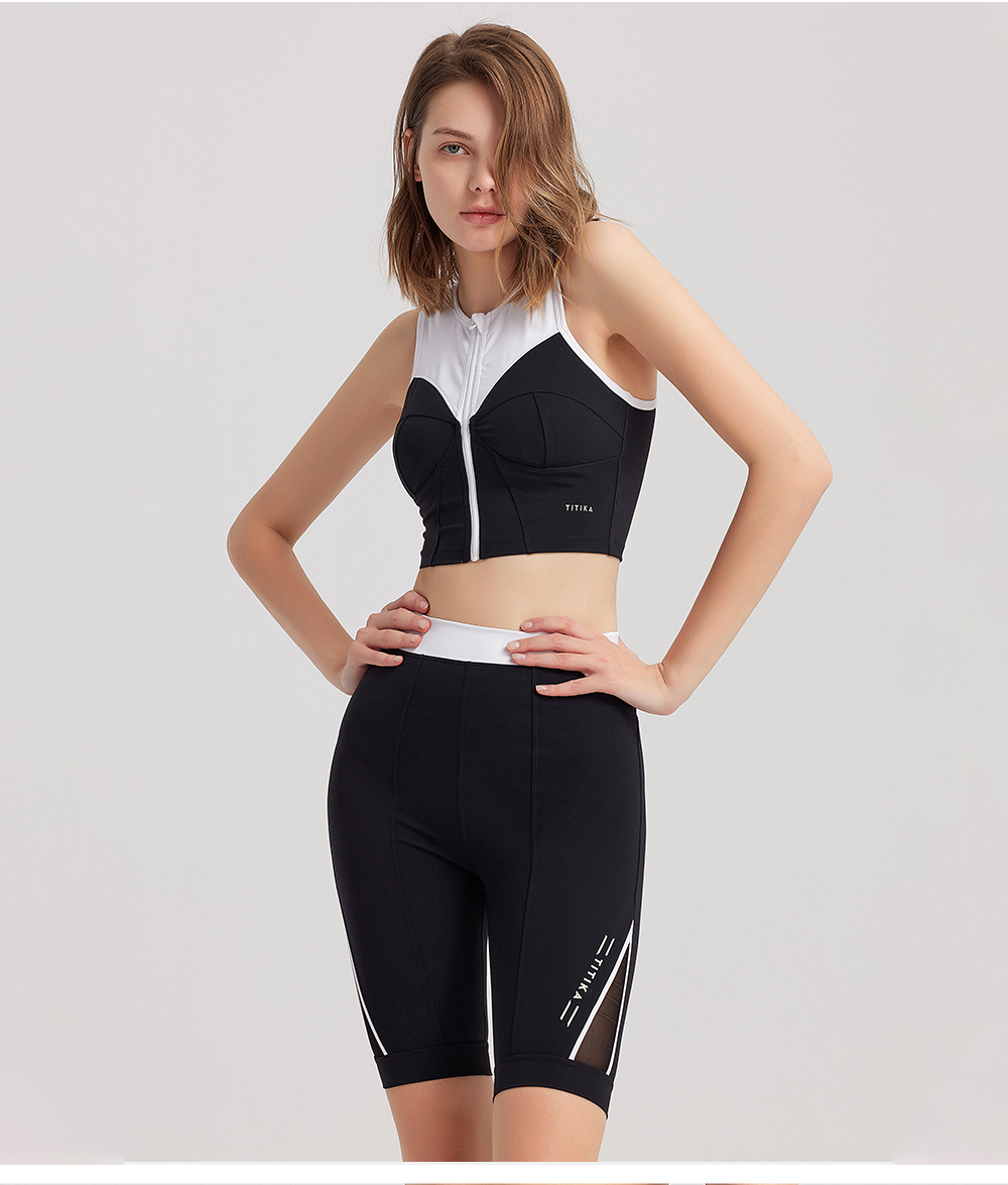 加拿大TITIKA撞色高腰骑行裤女收腹网纱吸汗排湿健身运动瑜伽裤2DP21052
