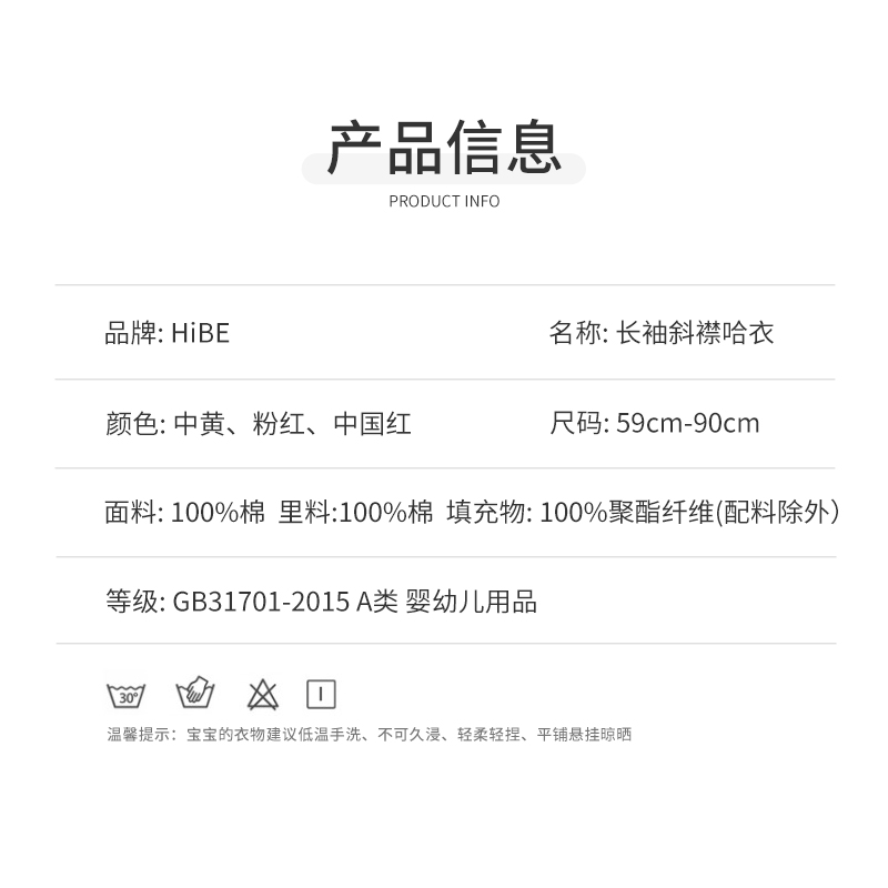 怡比好运来长袖斜襟哈衣HY25WIN045中国红/中黄59#-90#