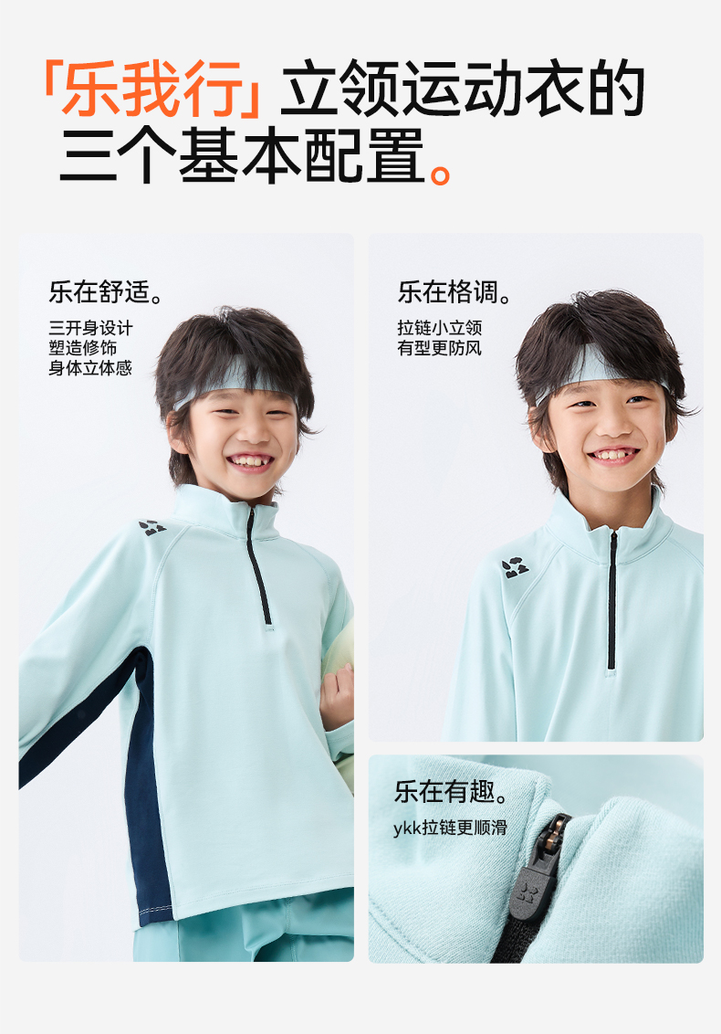 【乐我行儿童立领运动衣】森林棠25秋款撞色立领吸湿排汗运动上衣20342518