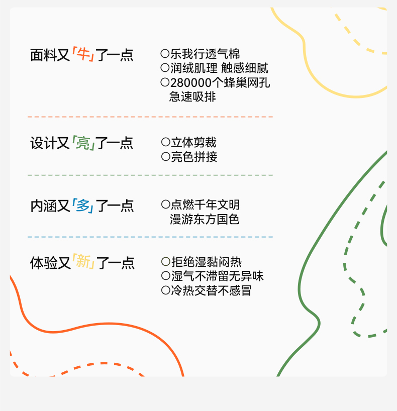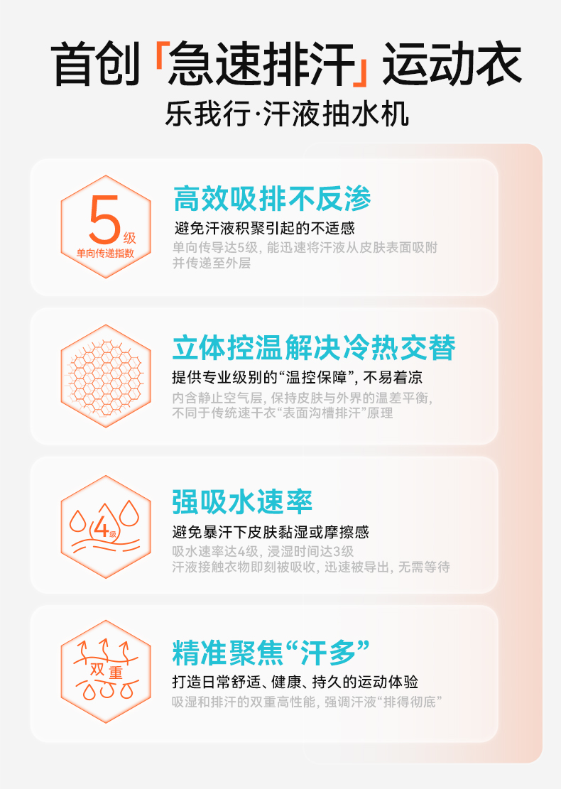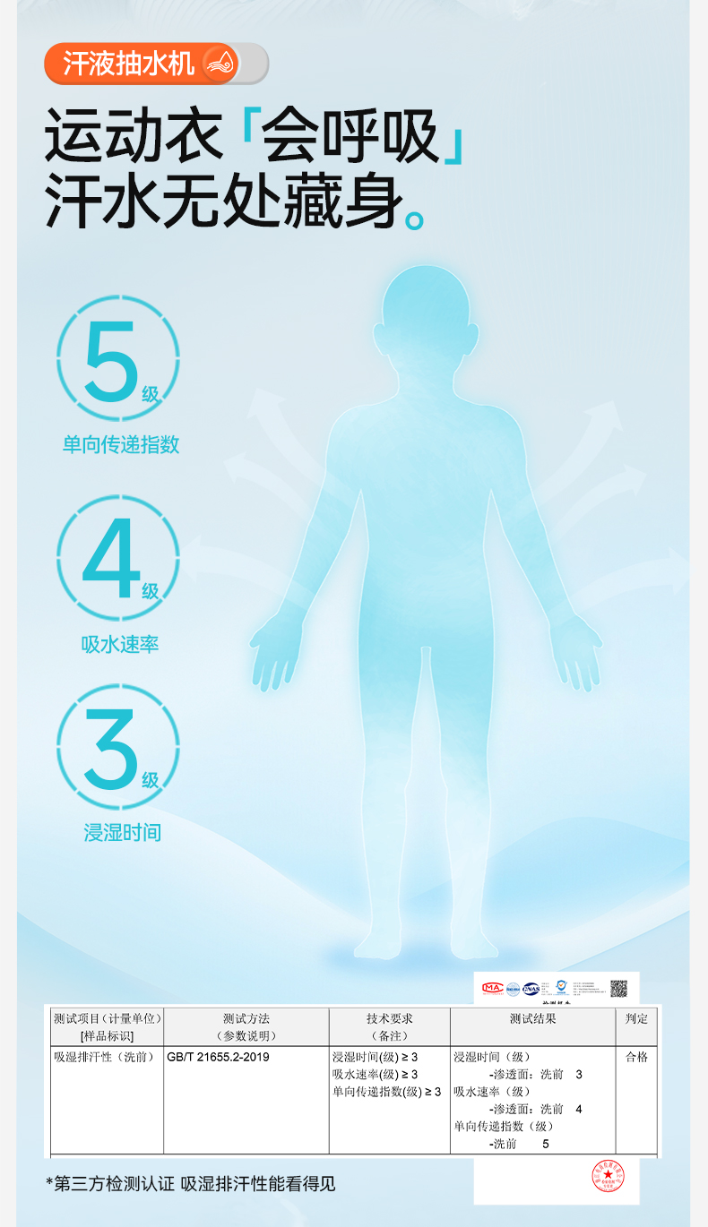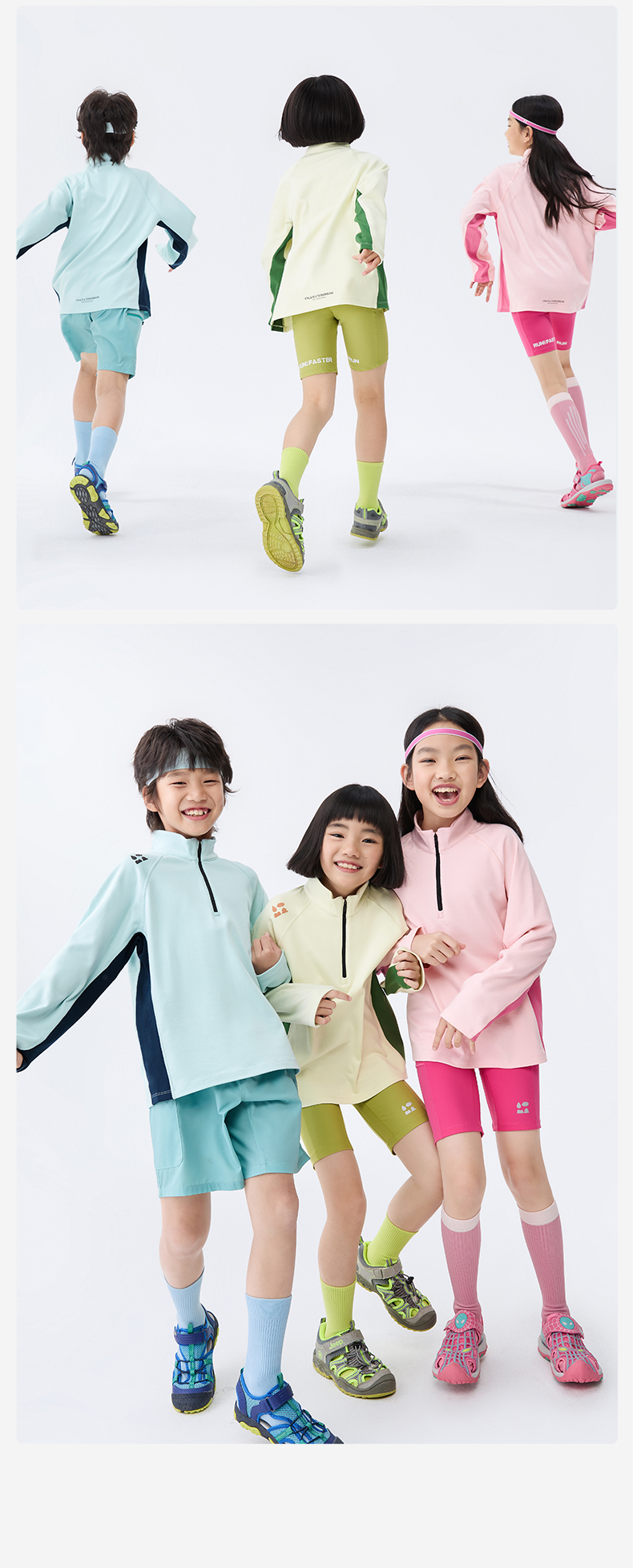 推荐理由:整个系列,采用了蜂巢网孔急速吸排面料,吸湿强,排汗快,运动场景下能让你时刻保持干爽,从容应对孩子爱动爱出汗带来的各种烦恼(汗湿着凉风险等)
