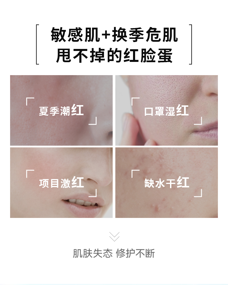 产品功效:舒缓安肤,huan解肌肤紧绷、泛红等不适,强韧肌肤屏障,平衡水油,深入锁水,深层滋润