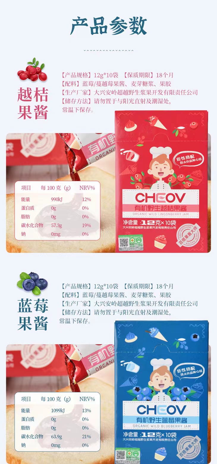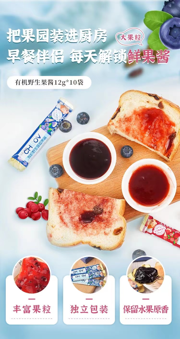 ★Cheov有机★野生蔓越莓&蓝莓果酱条 单条12g *10条/盒