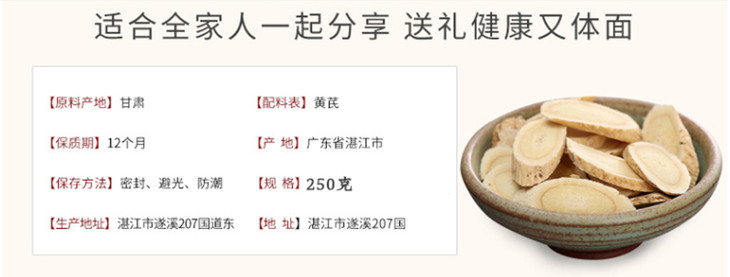 福东海 黄芪 甘肃精选黄芪大片250克 可搭配党参当归片