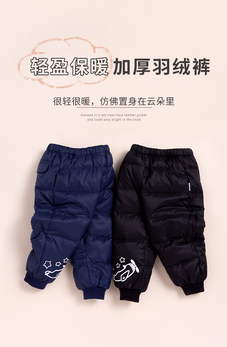 贝贝怡男女儿童羽绒裤子新款宝宝中小童白鸭绒长裤冬外穿214K2221