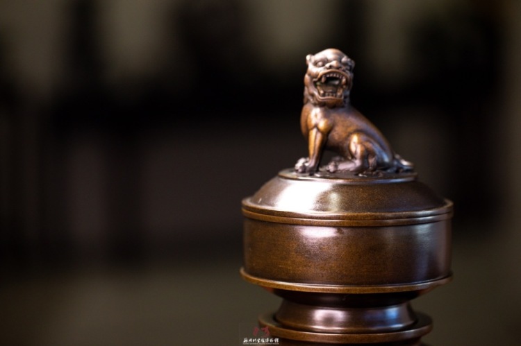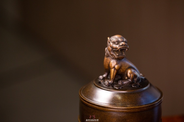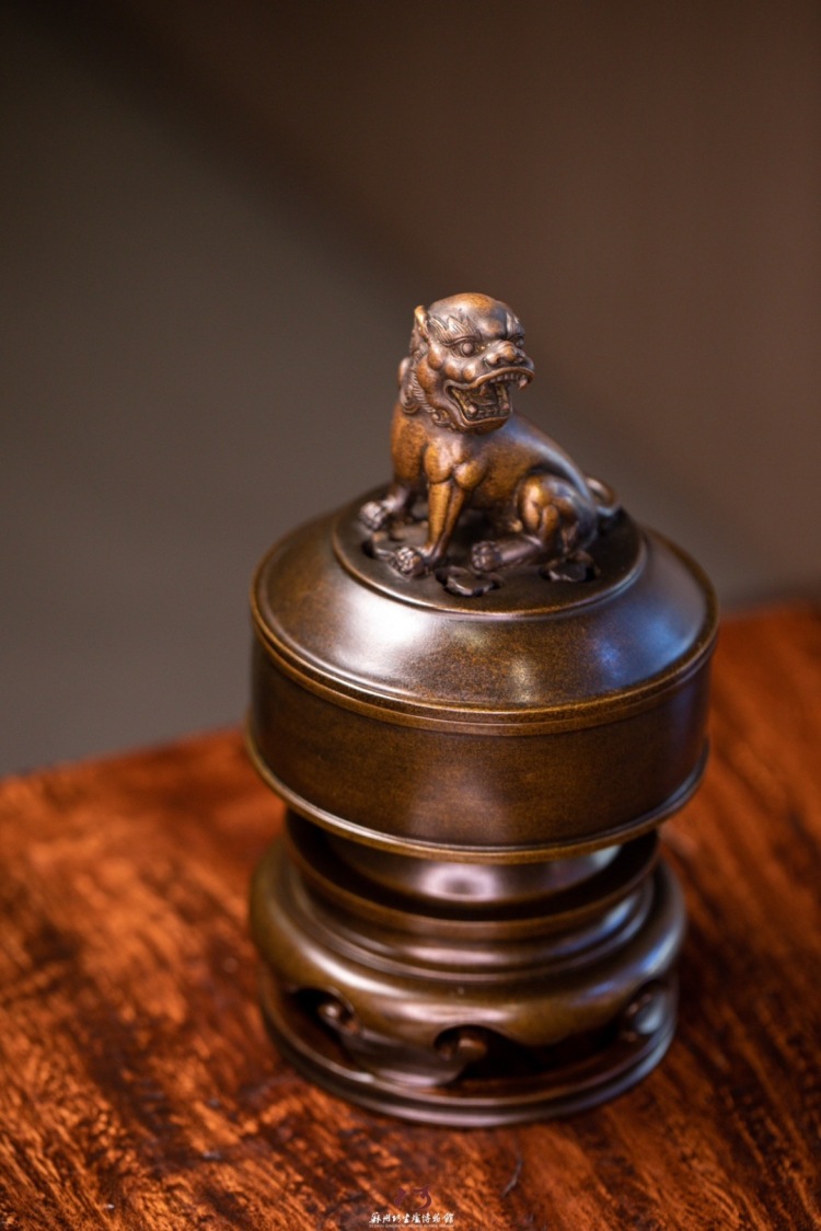 陈巧生制 c393带座狮钮熏炉 铜炉香炉摆件