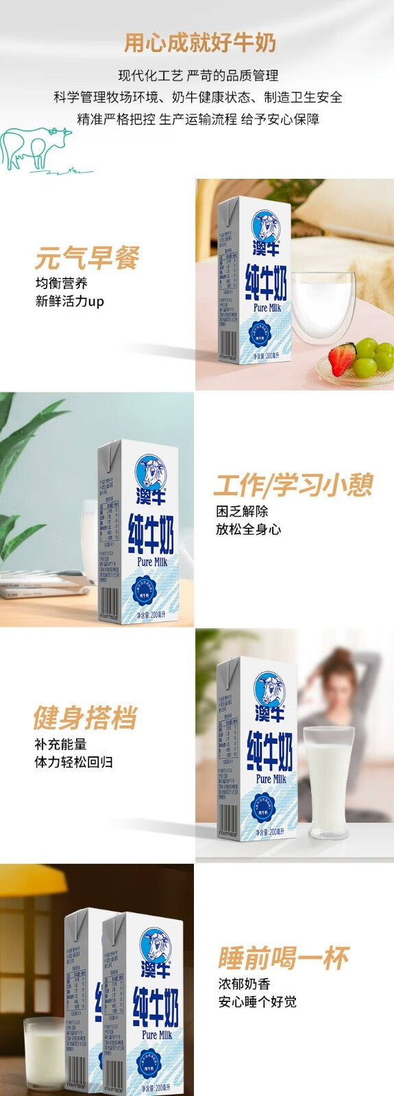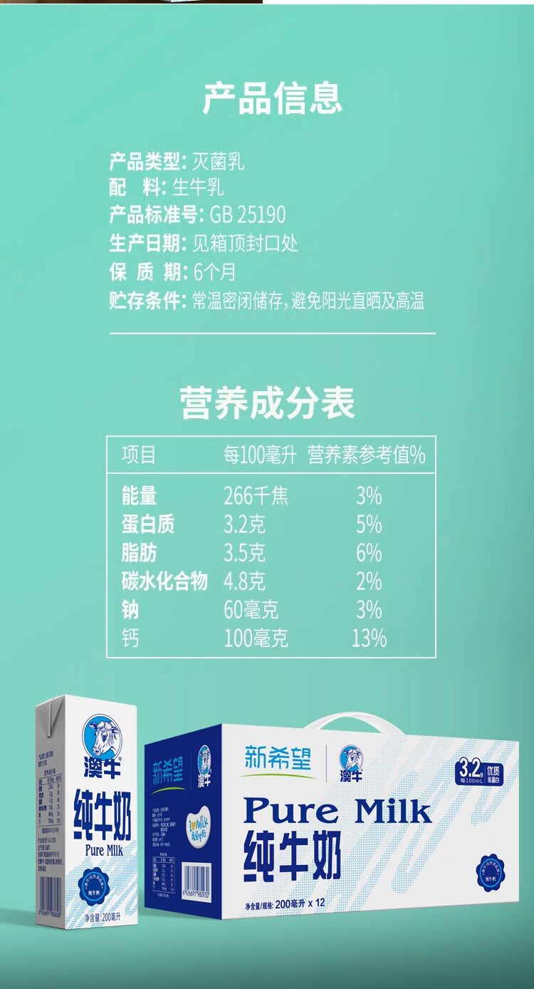 新希望澳牛纯牛奶200ml*12*2(2箱组合装)
