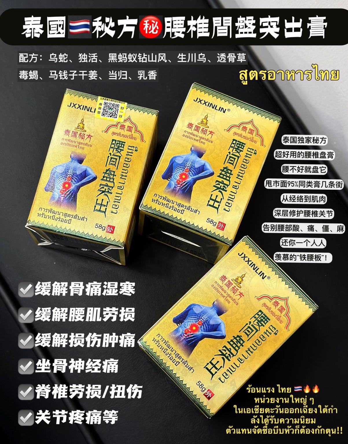 【泰国 JXXINLIN腰间盘突出】专攻腰间盘突出、腰椎酸痛 抹一抹!自带防伪 通络止痛,缓解损伤肿痛 守护腰椎健康!!全家都能一起用!