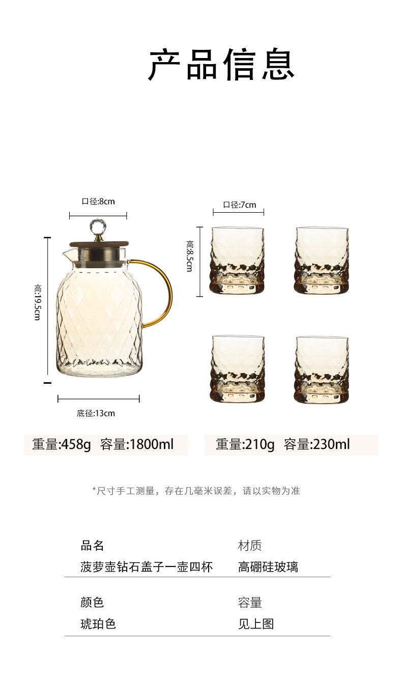 DB.bing菠萝壶水杯套装 夏日必备 凉水壶、做甜水、煮茶、泡柠檬都很方便