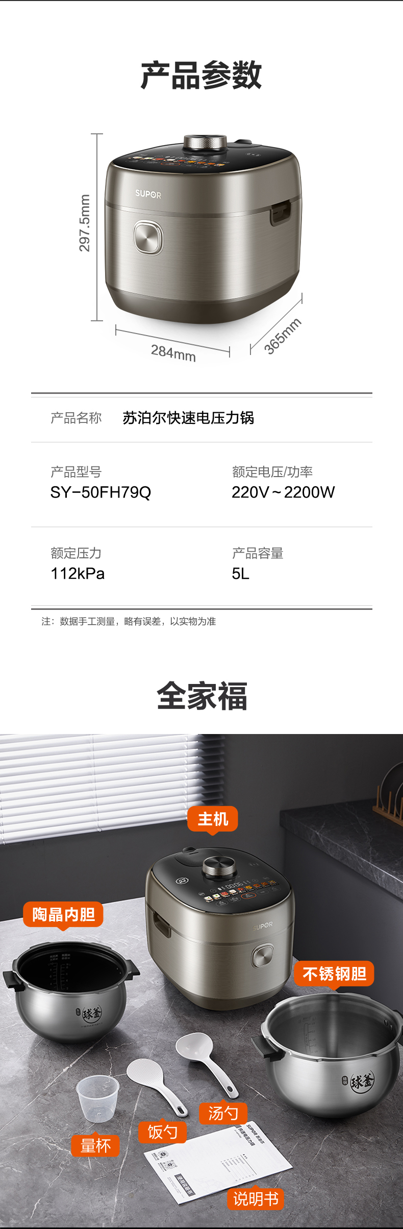 SUPOR苏泊尔电压力锅SY-50FH79Q香槟金/陶晶/快速