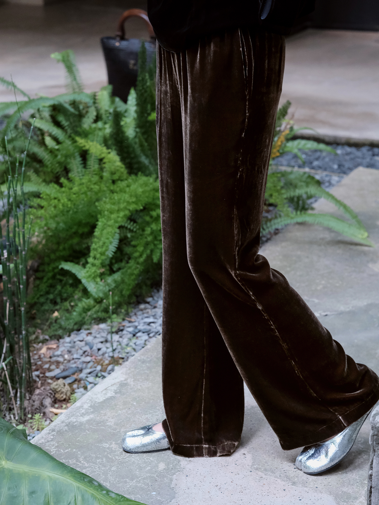 盛唐婧 |新中式丝绒微喇裤咖色
