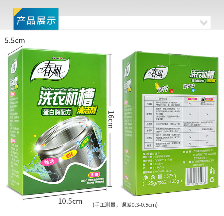 春风 洗衣机槽清洁剂洗衣机滚筒内壁清洗剂内筒除垢滚筒清洗剂 洗衣机槽清洁剂(125g*3)