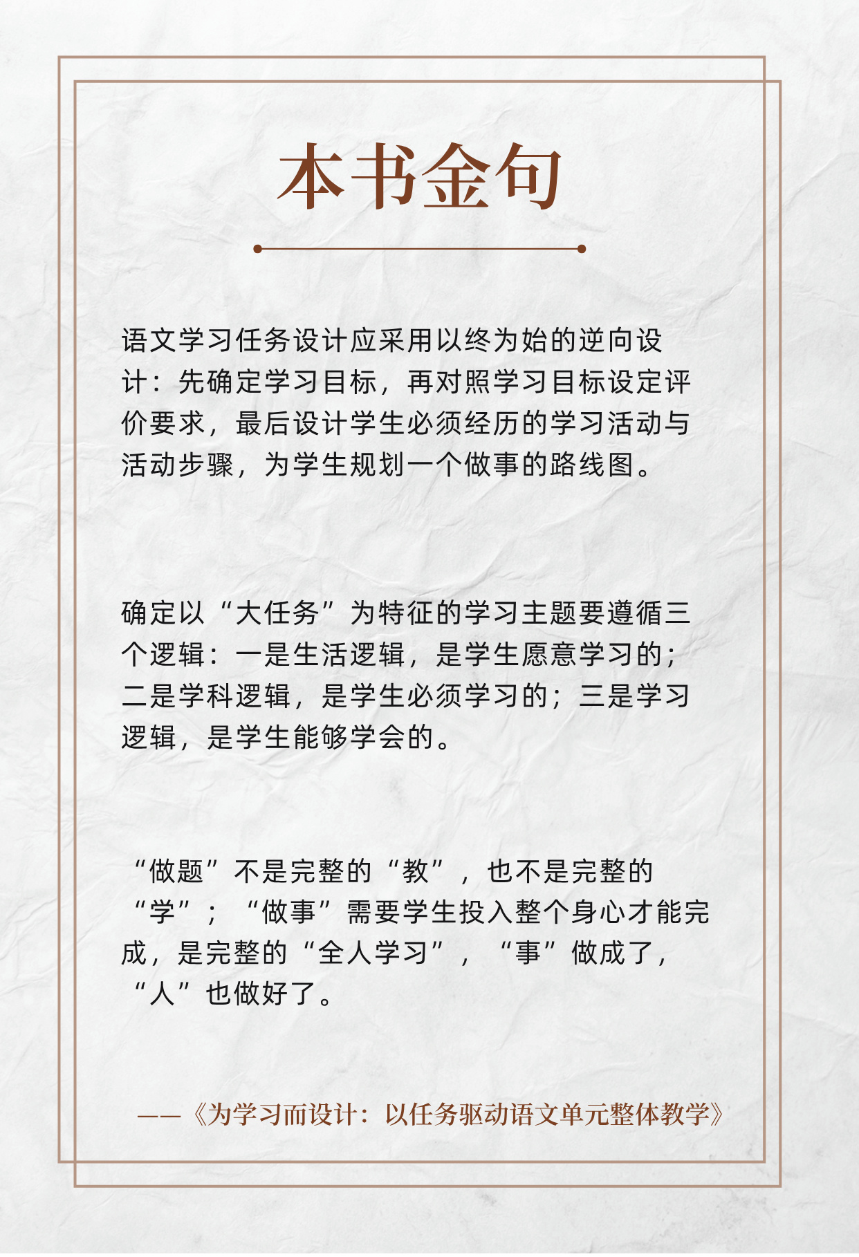 【源创图书】为学习而设计:以任务驱动语文单元整体教学 薛法根 著