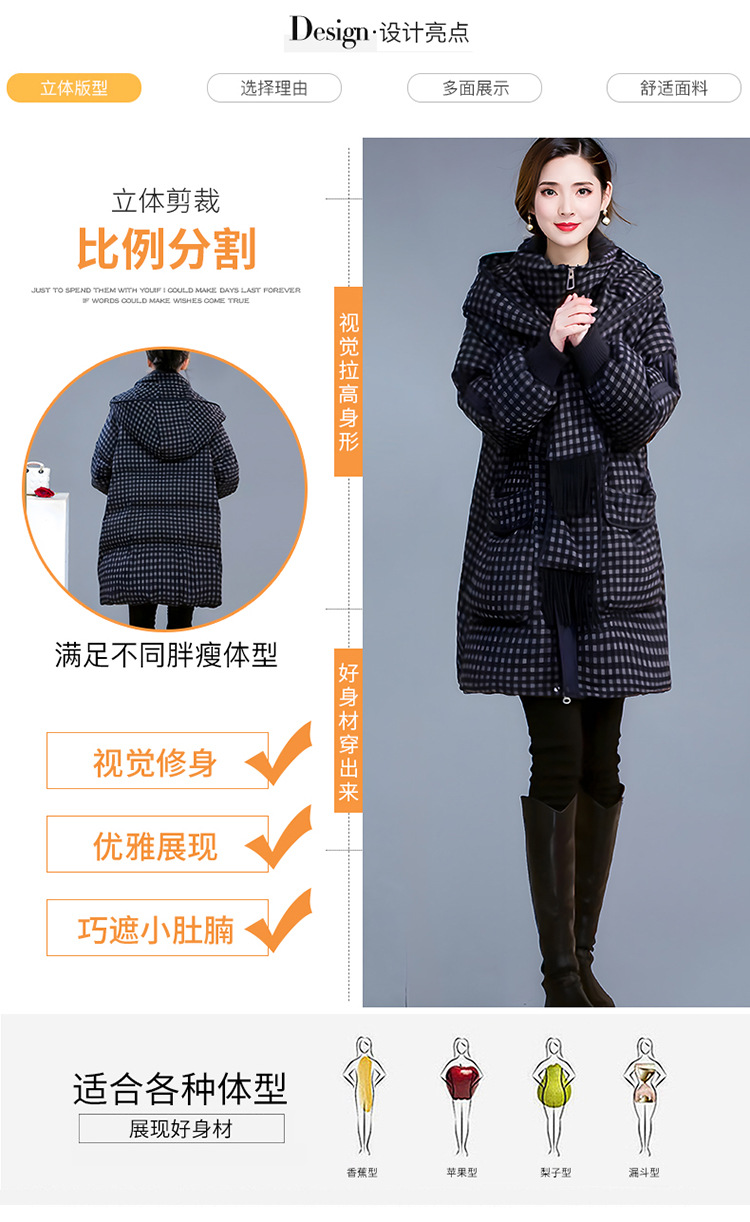 QYM 99H301格子羽绒服大码宽松加厚保暖白鸭绒外套 商品图0