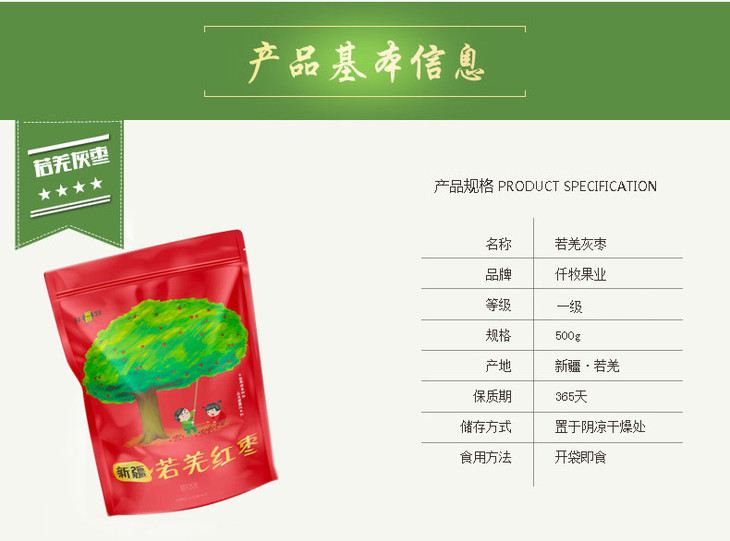 代理商品勿拍新疆若羌灰枣一级500克装