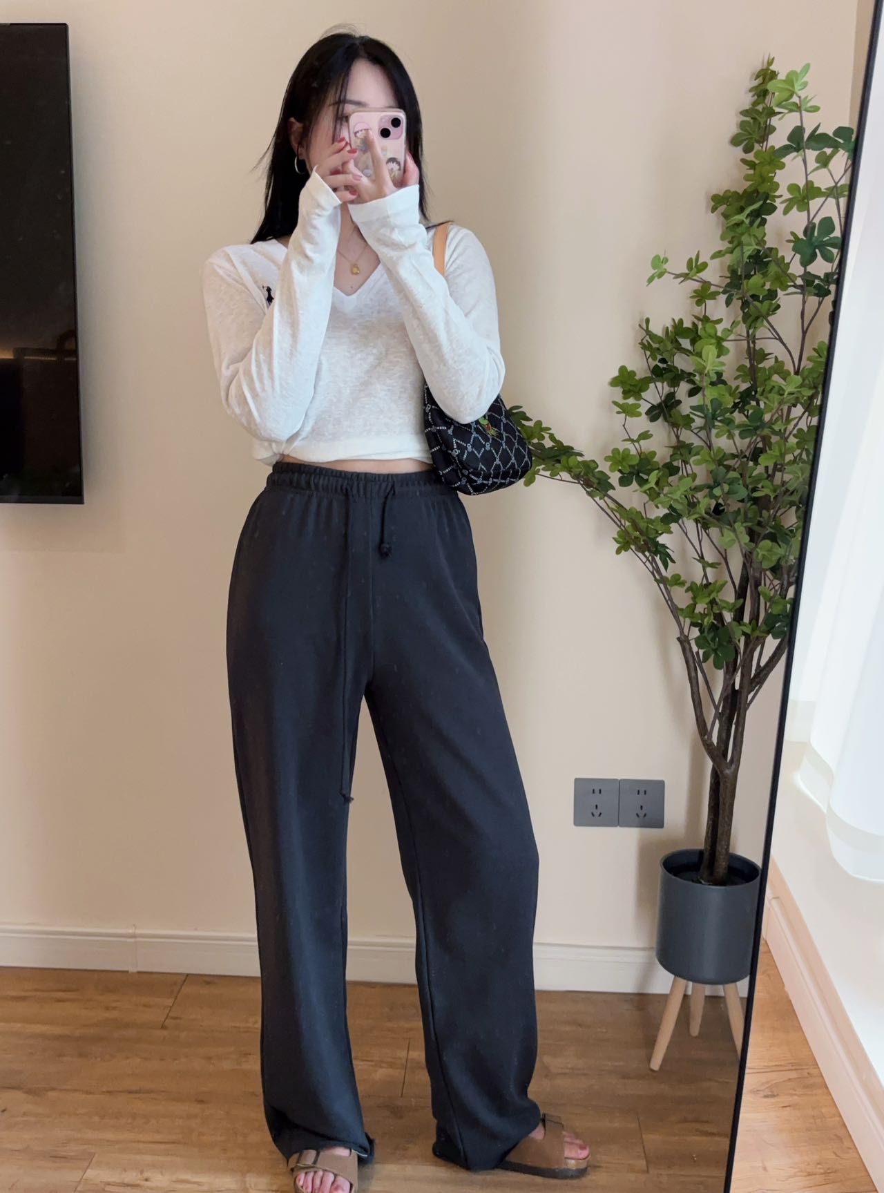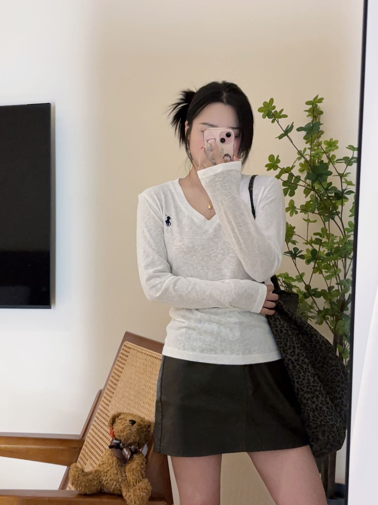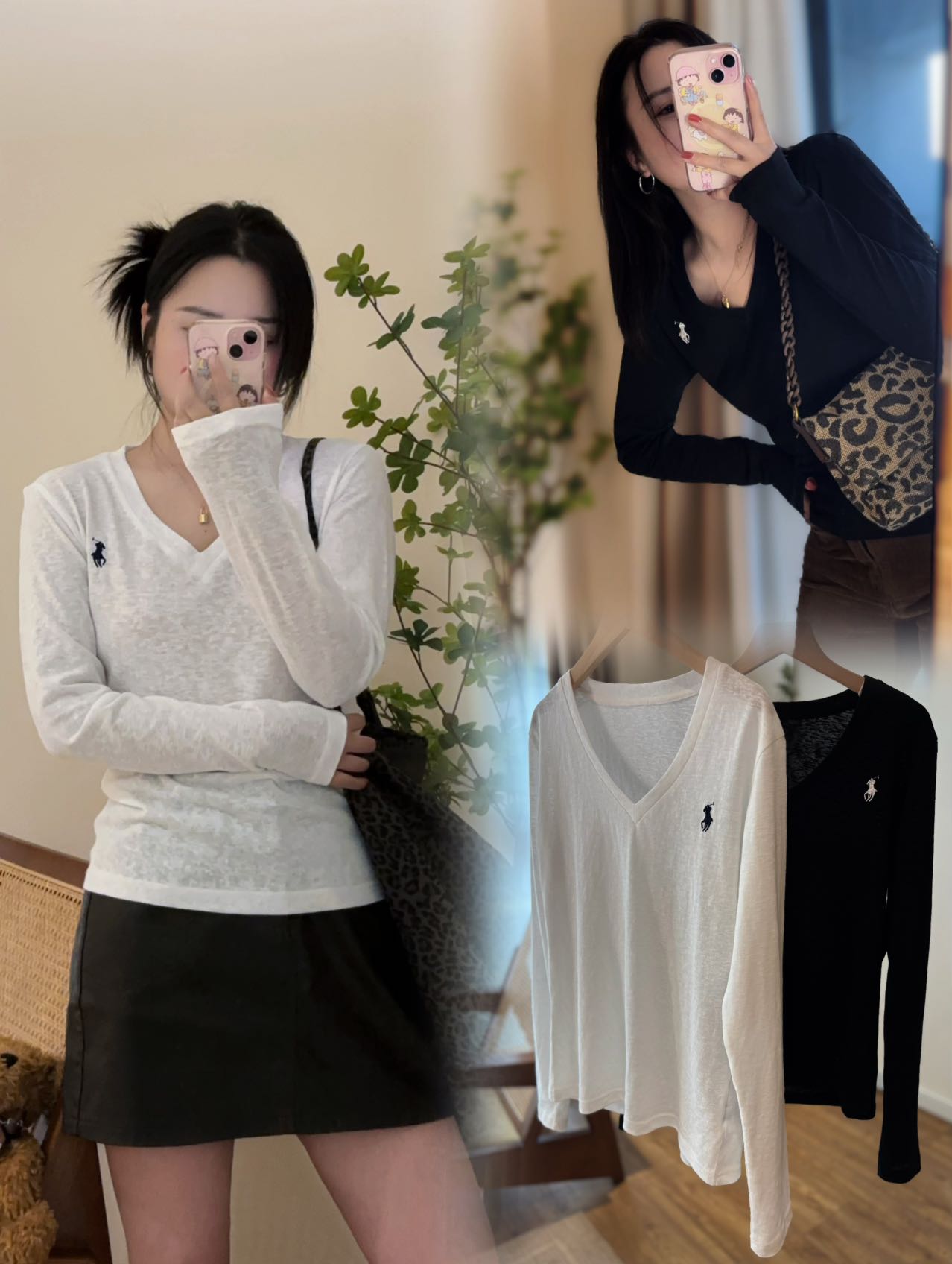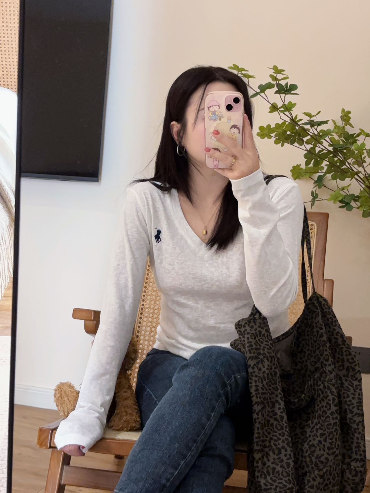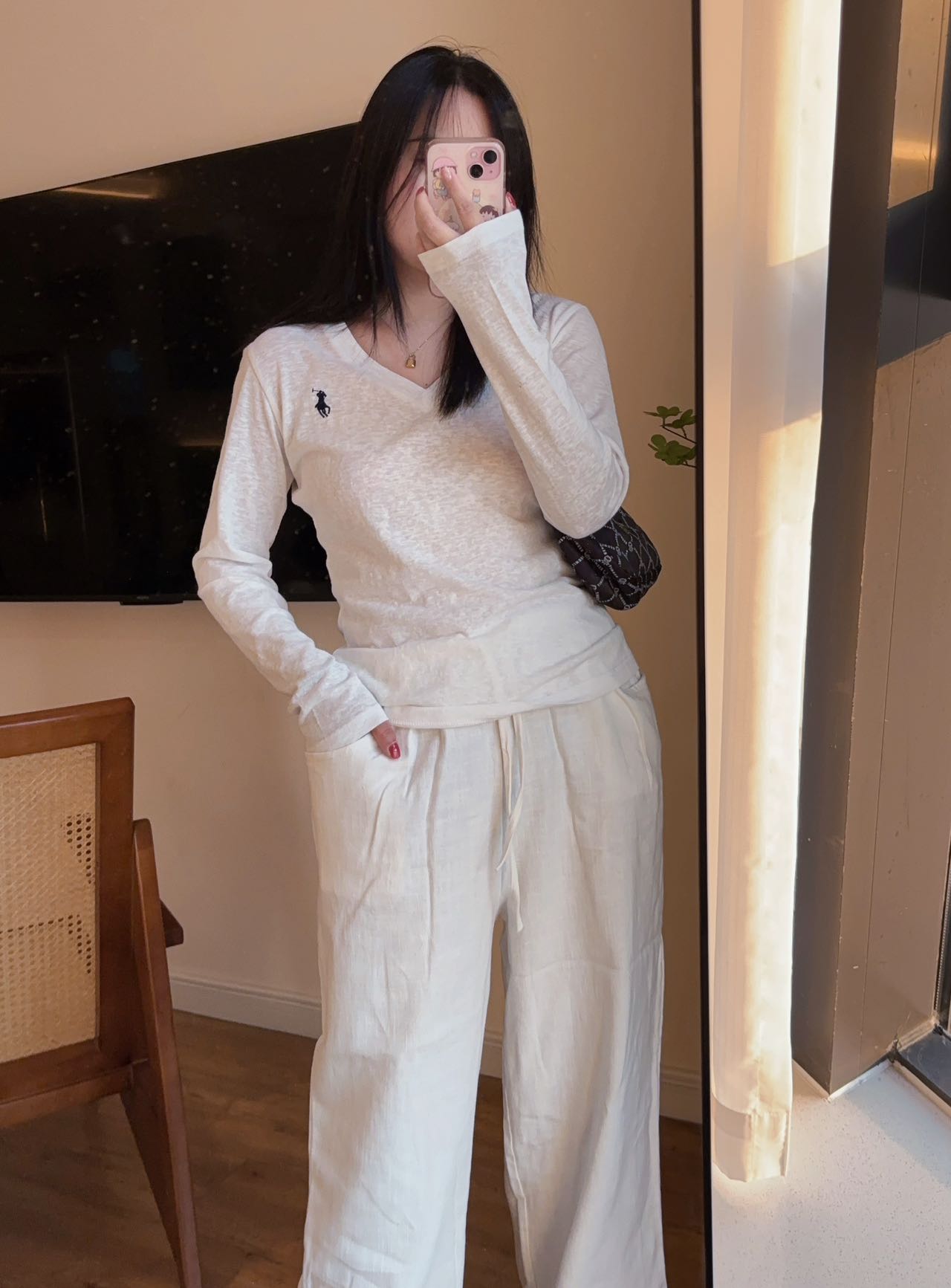 【Triuuchu V领麻感棉长袖T】经典色系 战马系运动休闲风 棉麻质感的优雅和随性 修身设计凸显腰线比