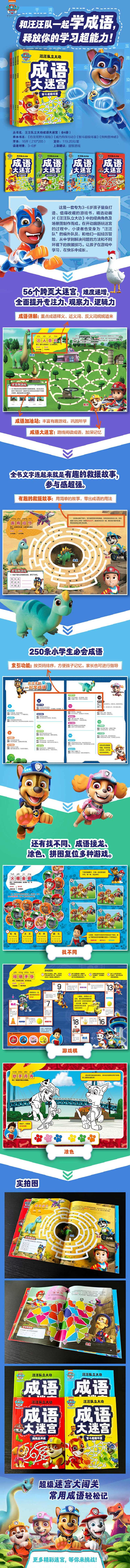 书名: 汪汪队立大功成语大迷宫 全4册 56个跨页大迷宫 和汪汪队一起学会250个常用成语 释放你的学习超能力