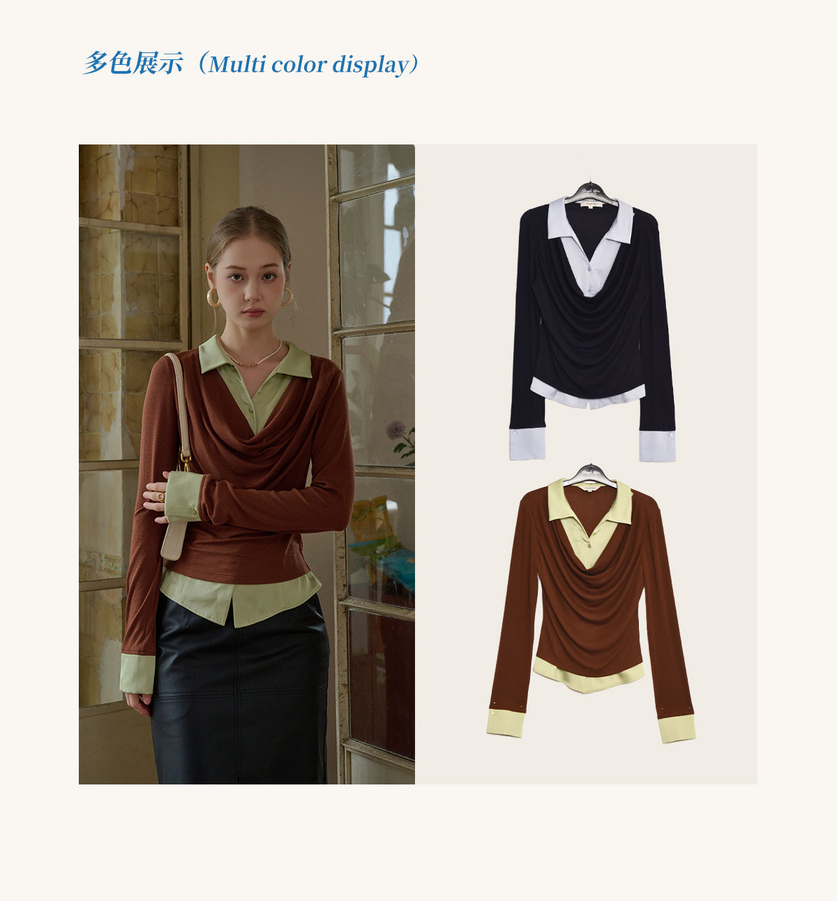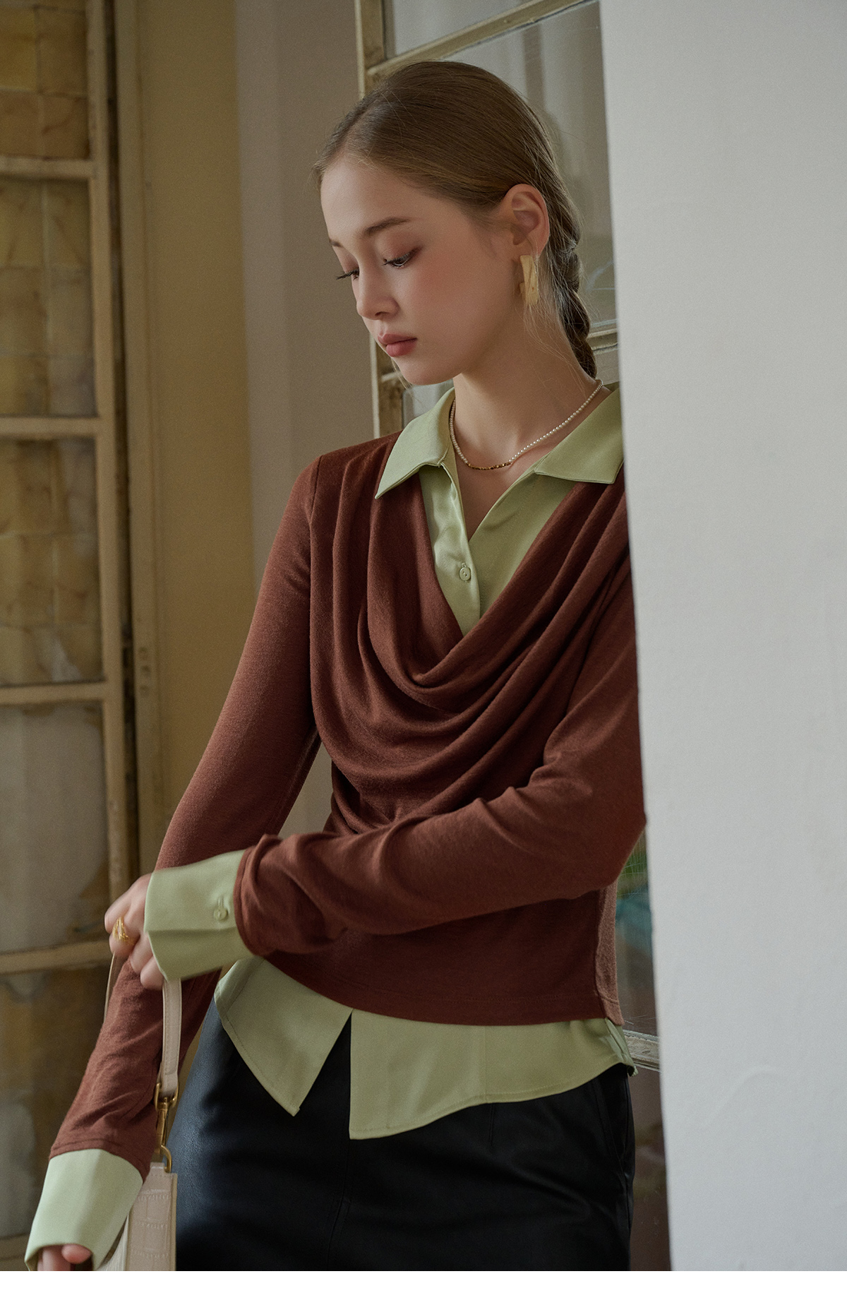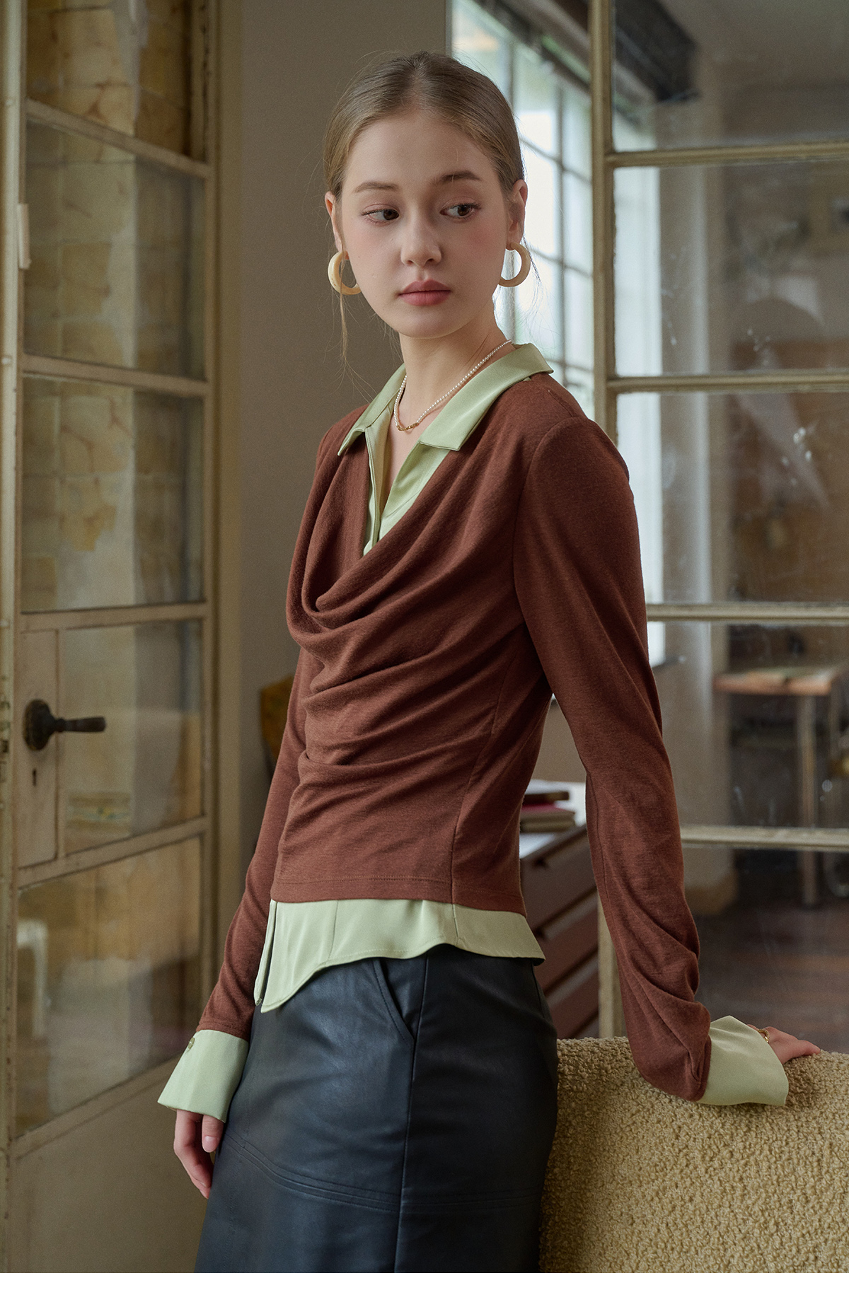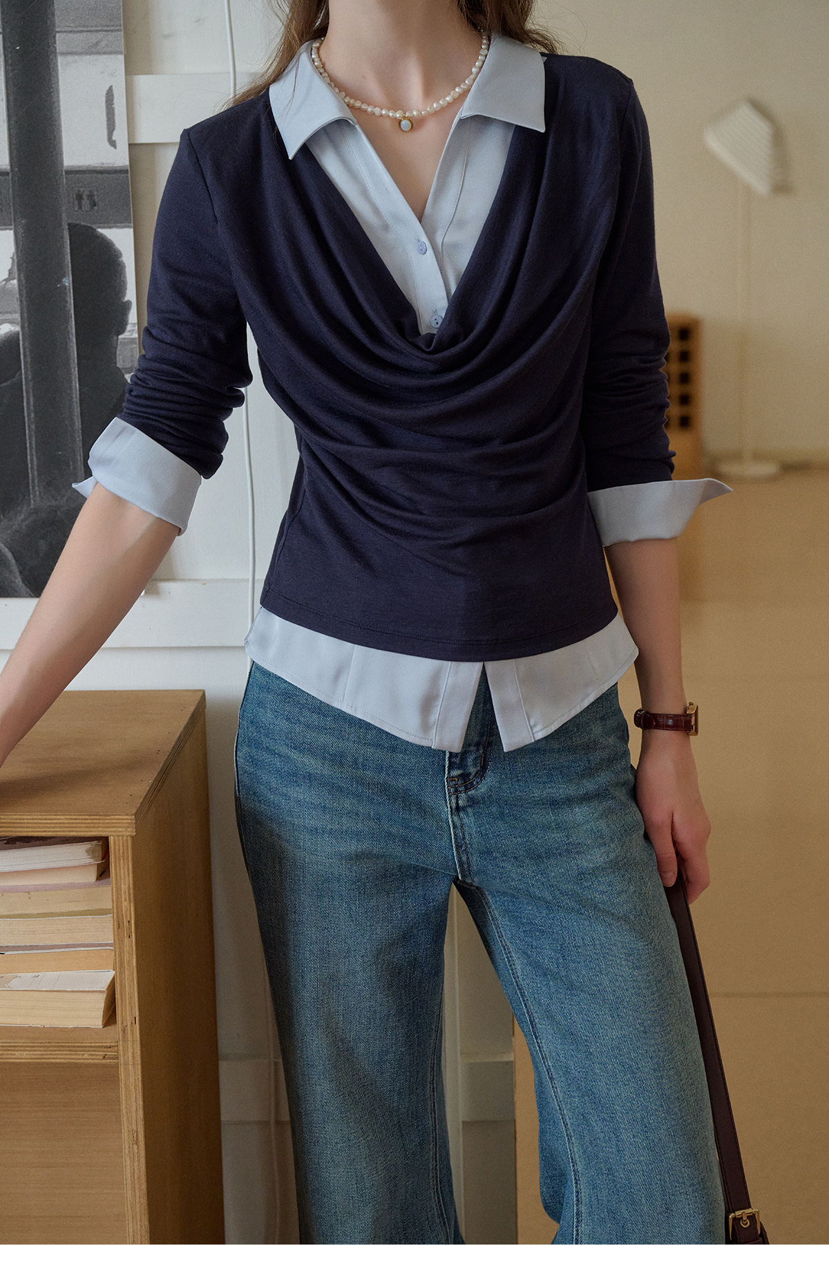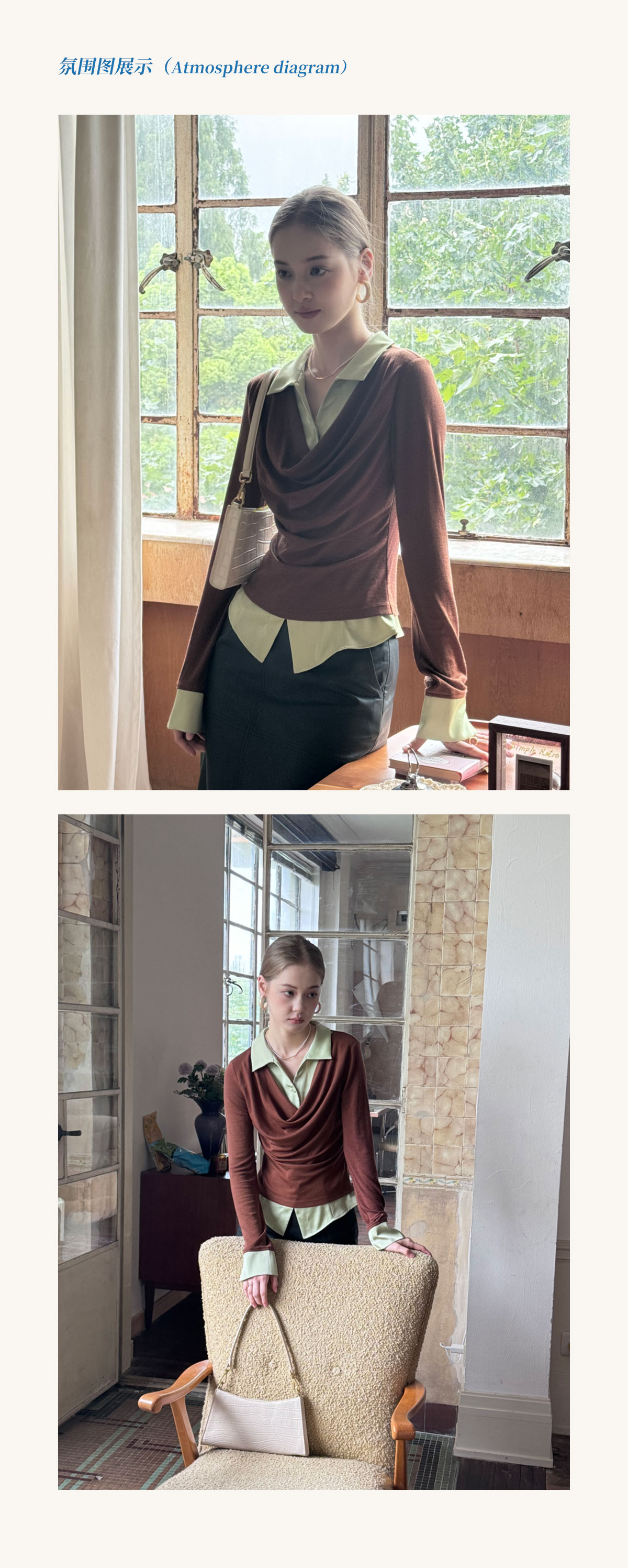 SimpleRetro天丝羊毛法式拼接针织衬衫女