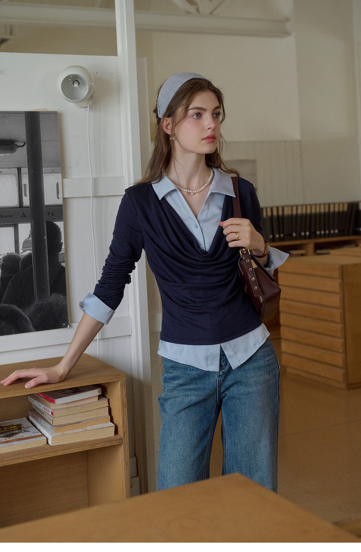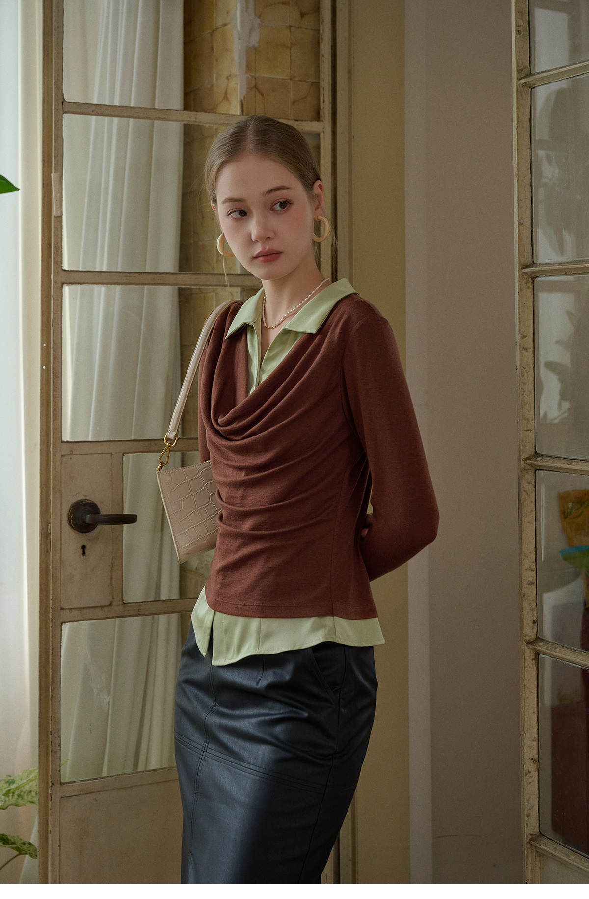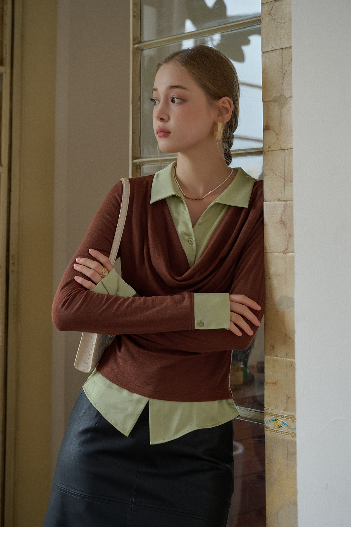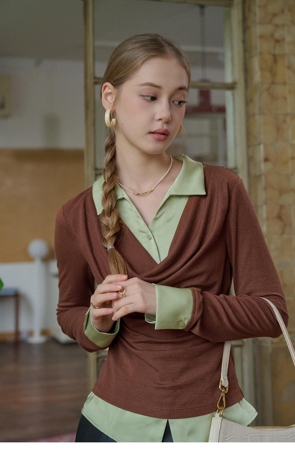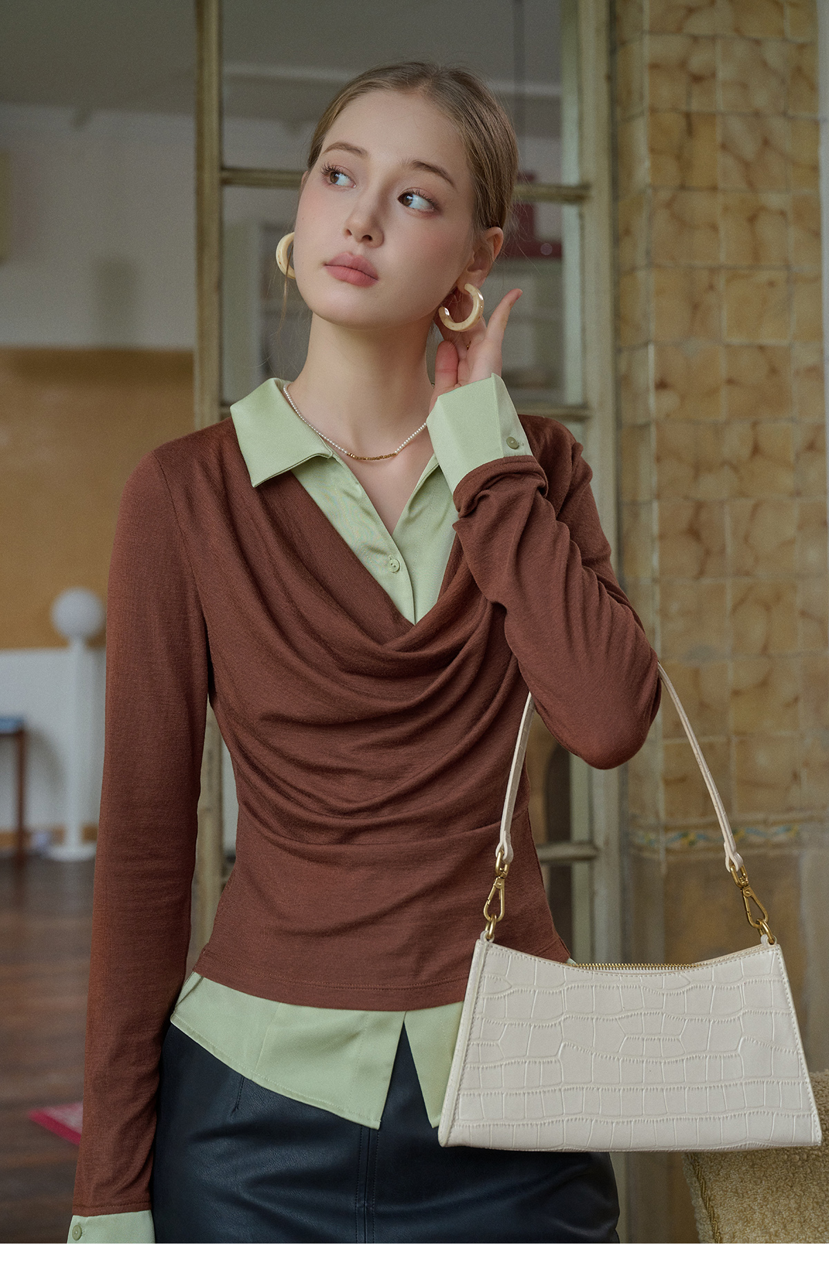 SimpleRetro天丝羊毛法式拼接针织衬衫女