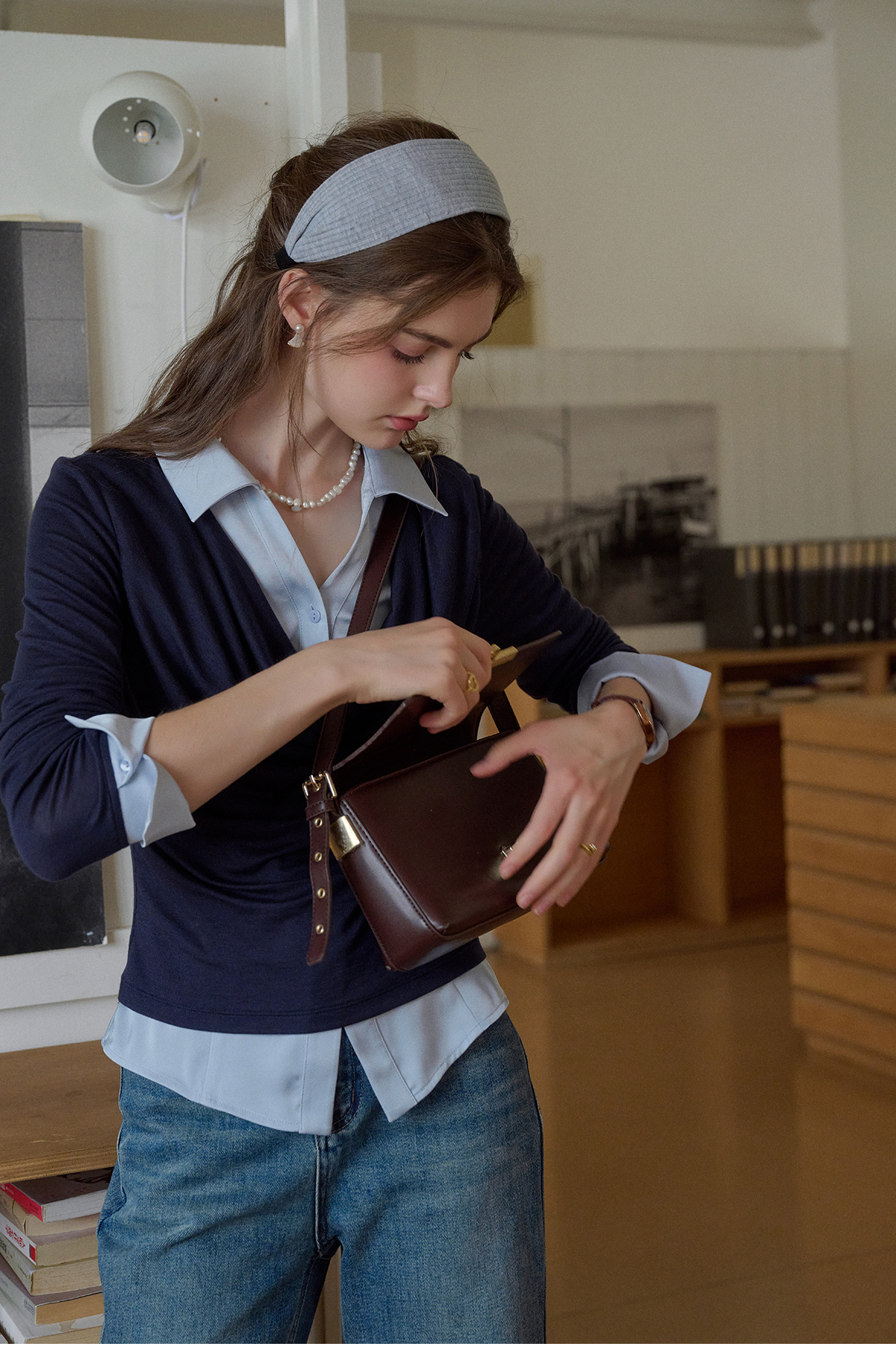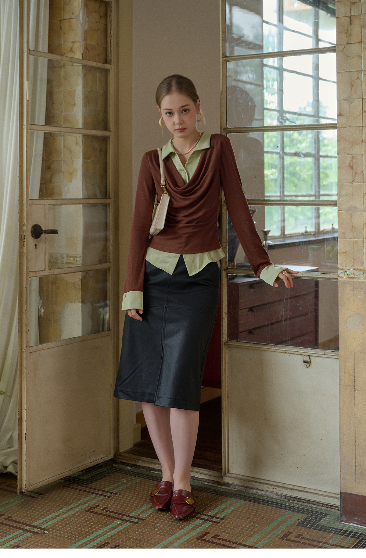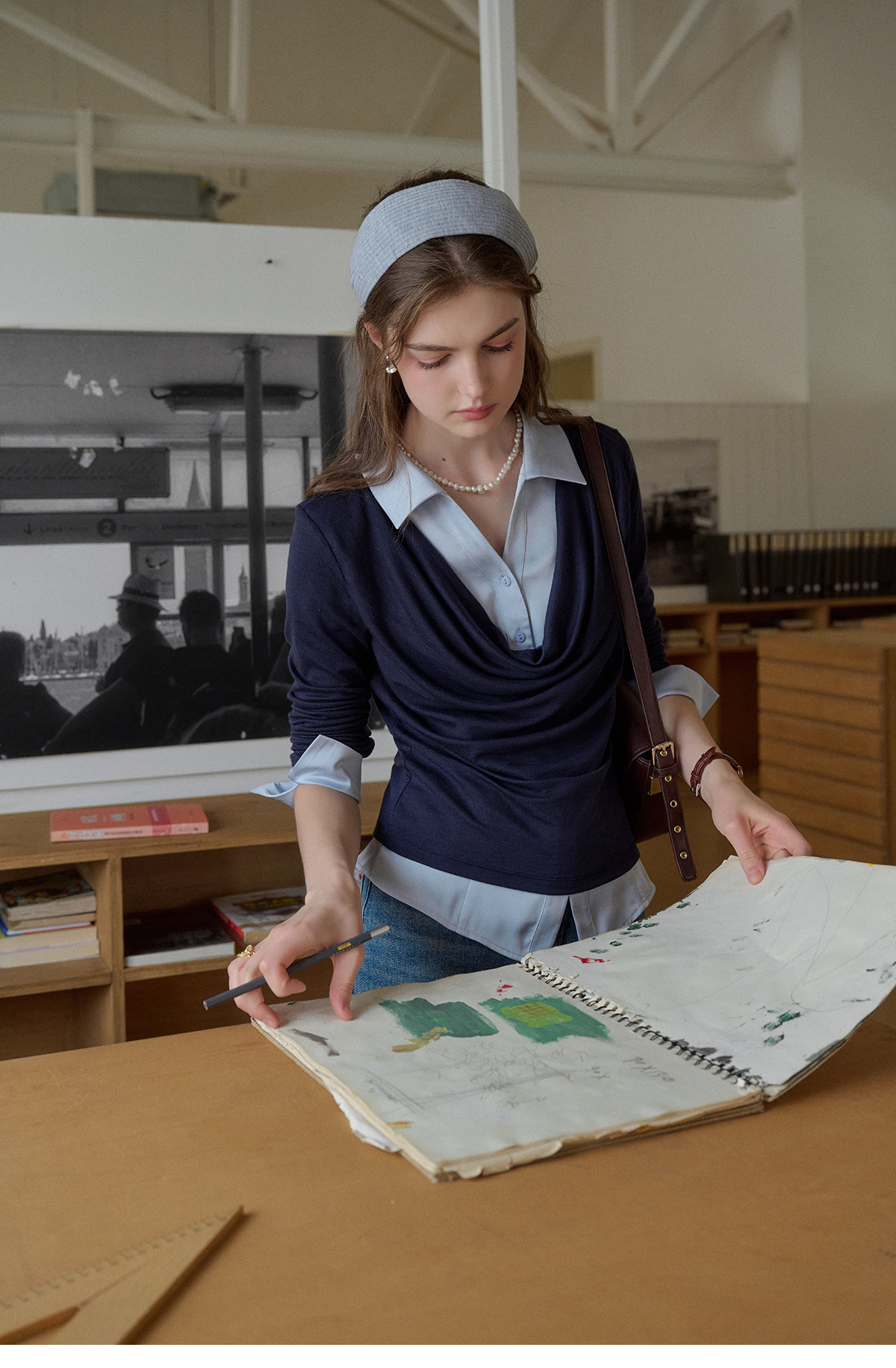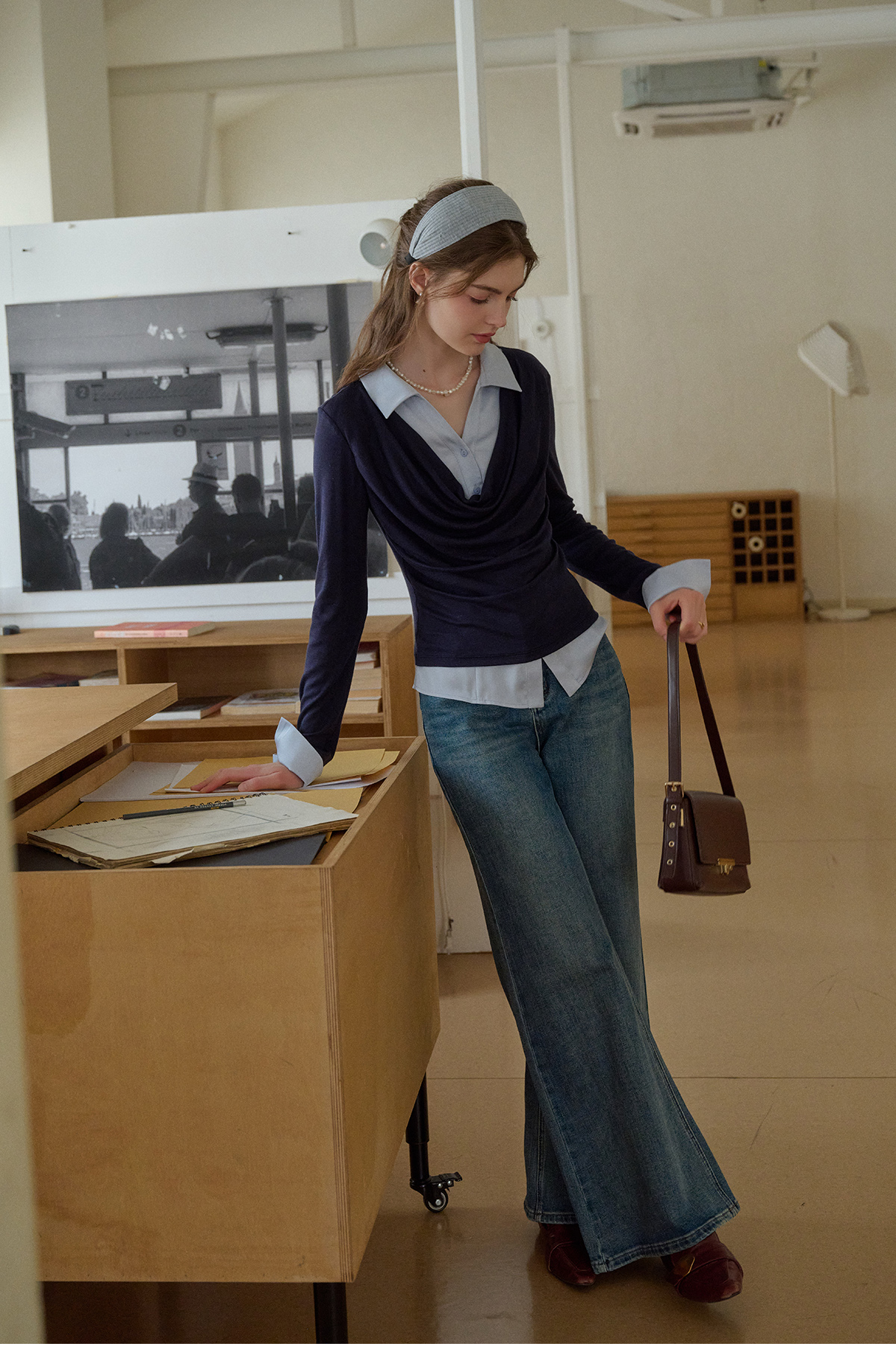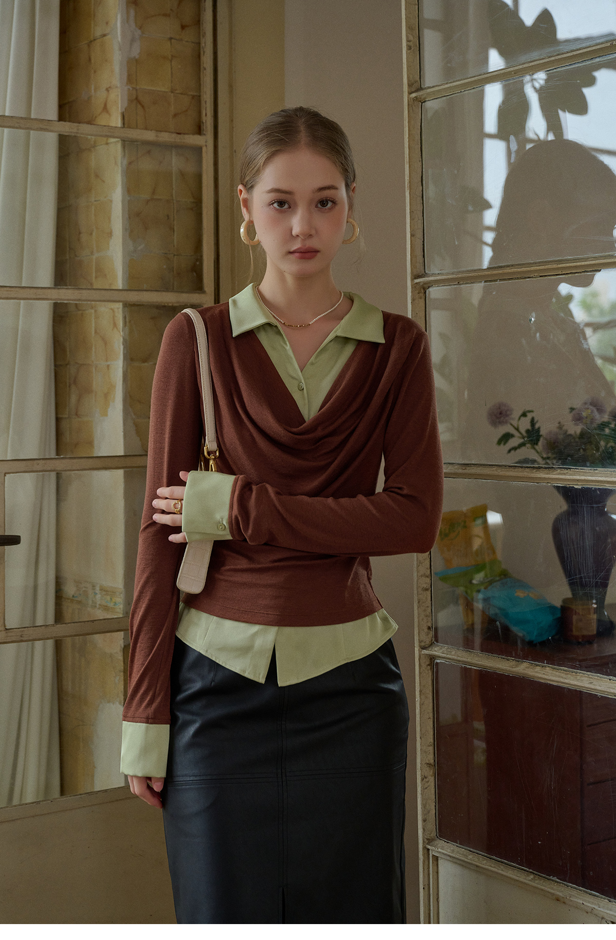 SimpleRetro天丝羊毛法式拼接针织衬衫女