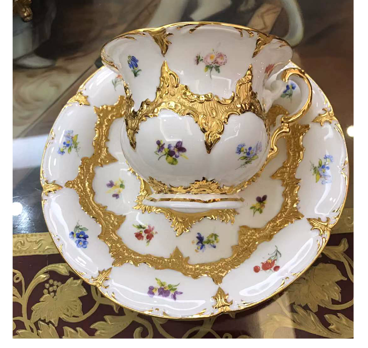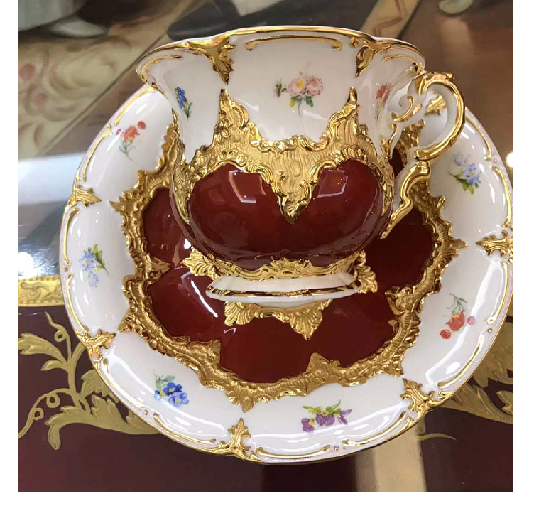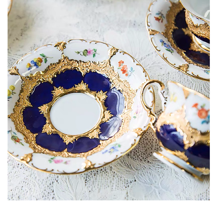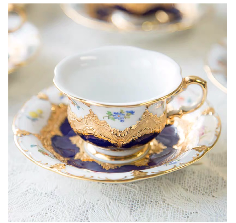 欧式古董重鎏金带花皇家咖啡杯碟