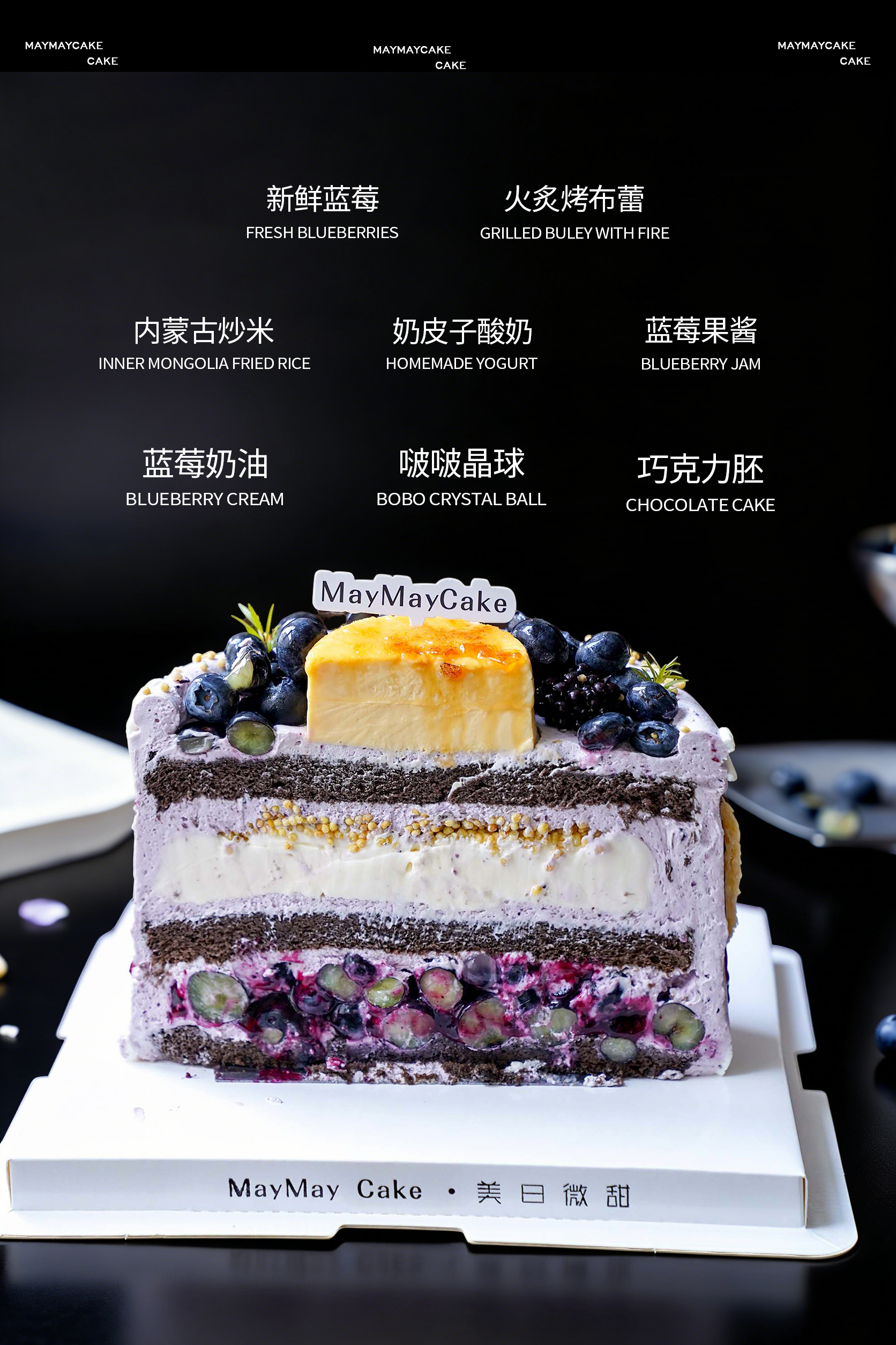 MAYMAYCAKE是一家高端定制最潮最新蛋糕店,坚持选用进口原料,每日纯手工用心制作,只为每位顾客尝试最美味的放心。一心一意做蛋糕,把它做到极致。每款蛋糕都有一个故事一个回忆,因为蛋糕而喜欢上生