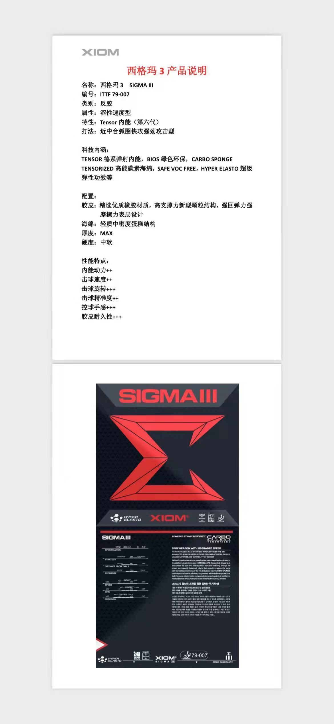 XIOM骄猛SIGMA2 PRO西格玛3二代三代专业版内能反胶套胶 正品行货